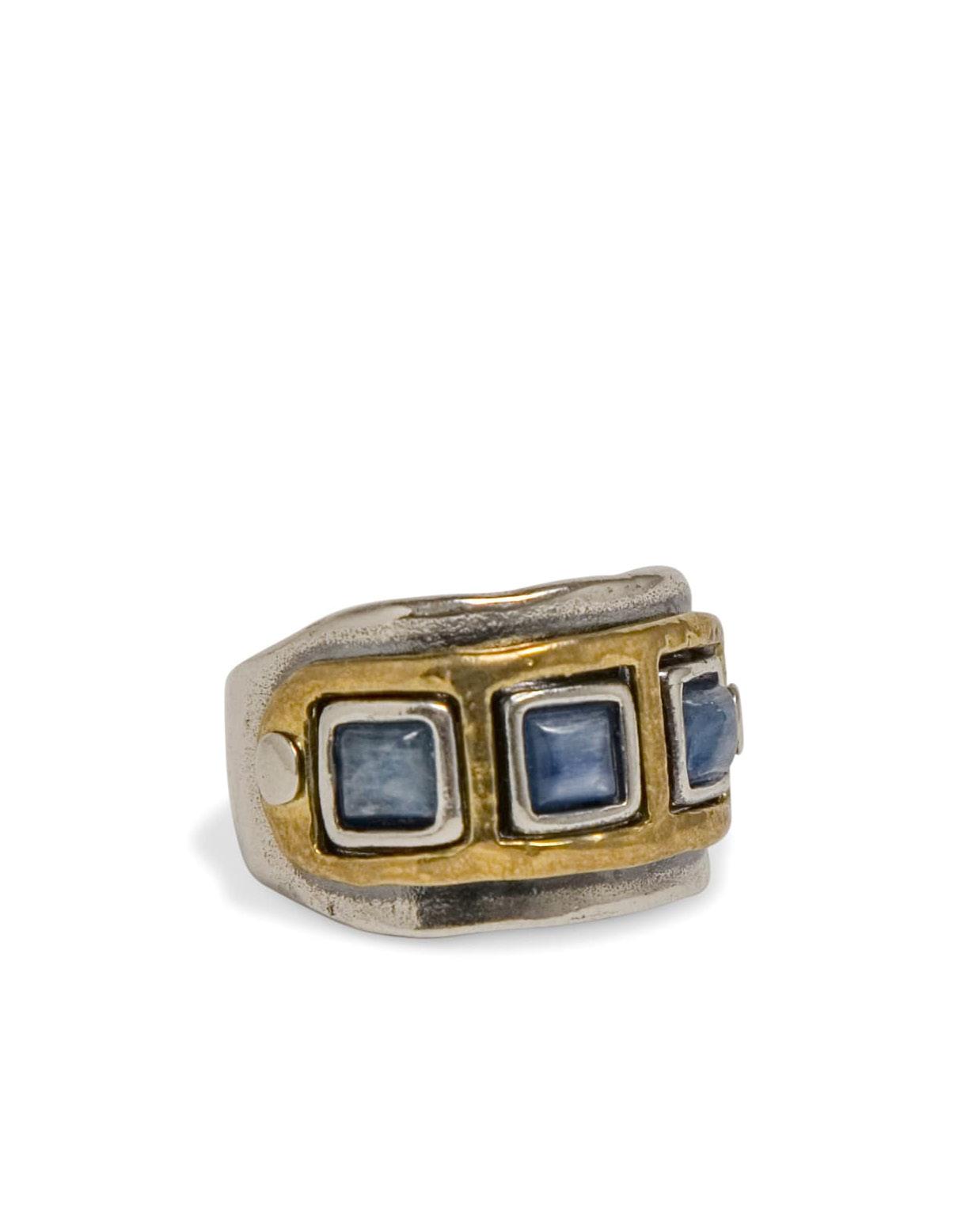 R1070 - Hammered Sterling Silver, Kyanite & Brass Spinner Ring