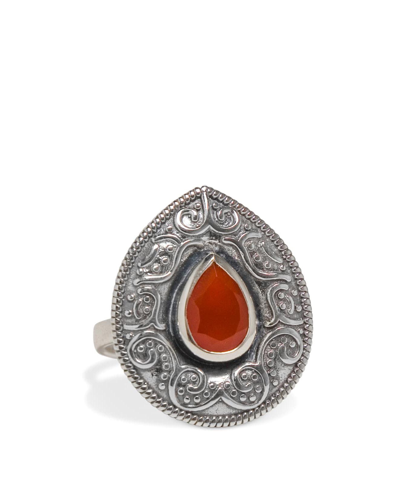 R1103 - Sterling Silver & Red Onyx Teardrop Ring
