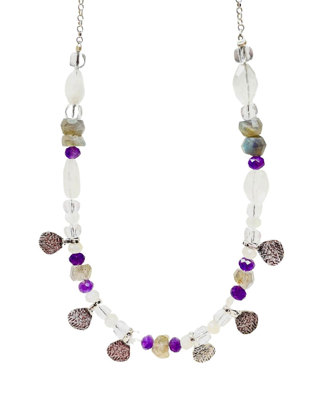 .925 Sterling Silver, Lodalite, Moonstone 28" - 30" length (2" built-in extender)