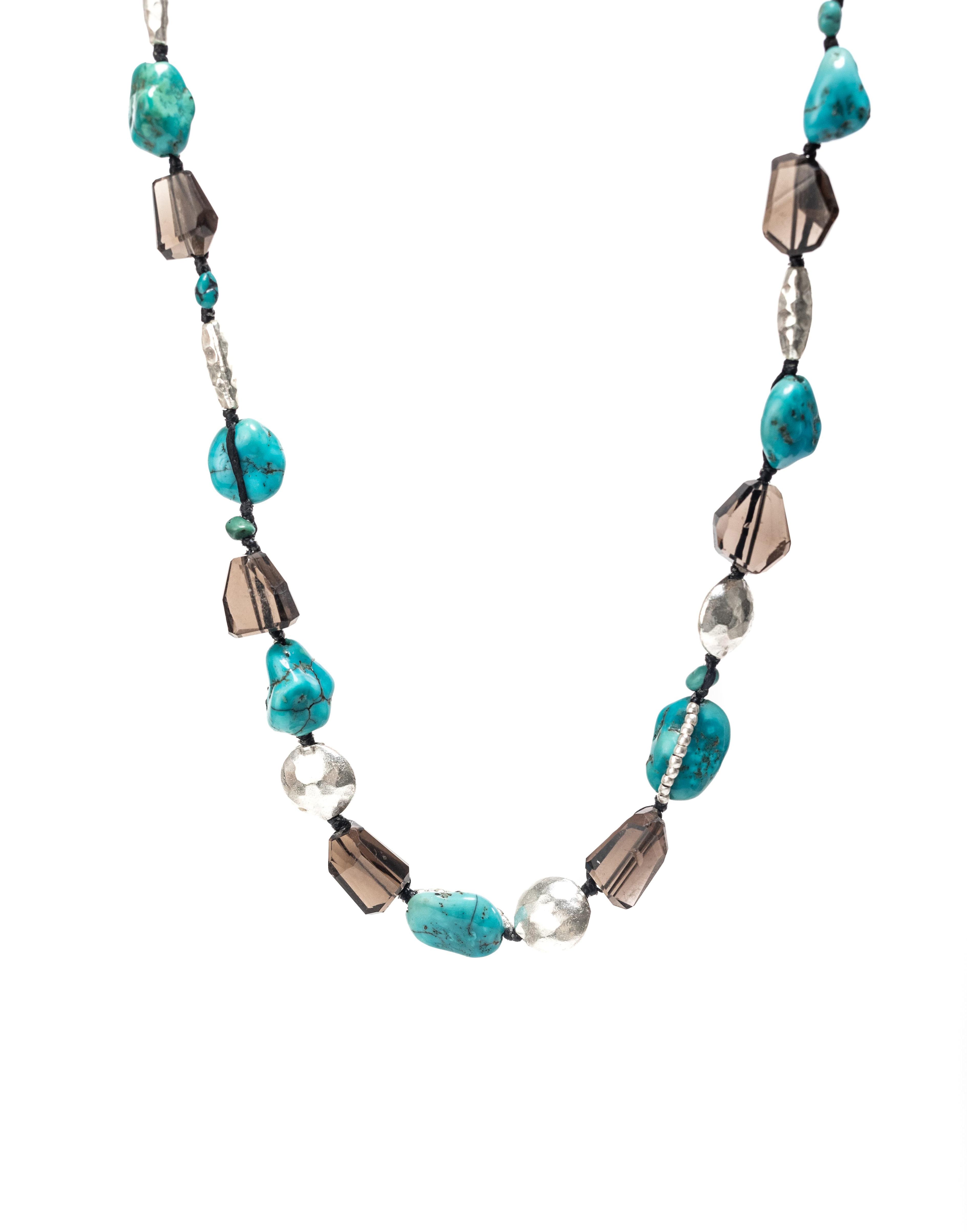.925 Sterling Silver, Smoky Quartz, Turquoise, Black Cord 18" - 18 1/2" length $439