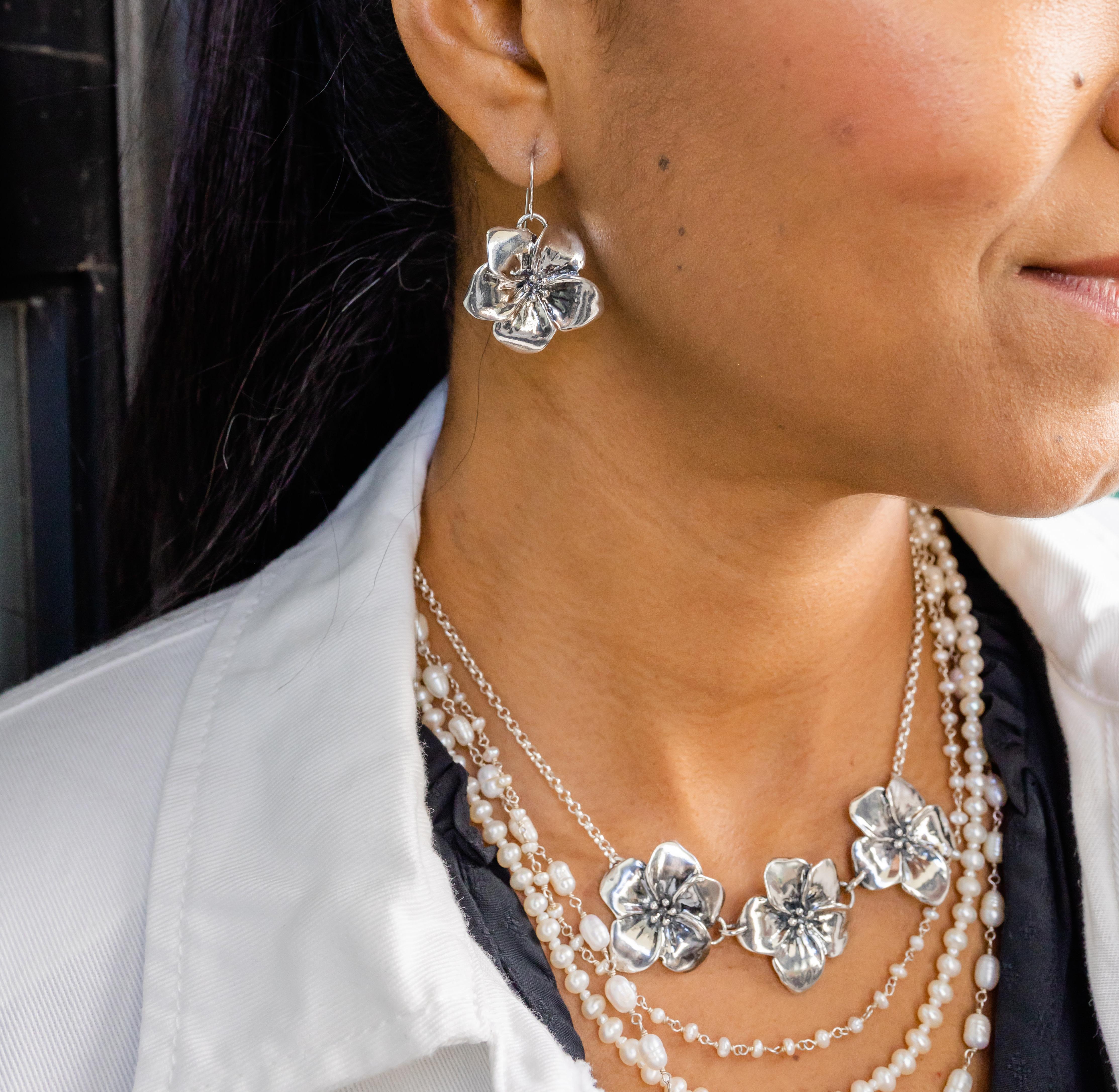 J1021 - Cherry Blossom Earrings $139 .925 Sterling Silver 1 1/2" length