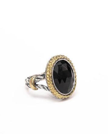 R1081 - Black Onyx, Brass & Sterling Silver Ring $109