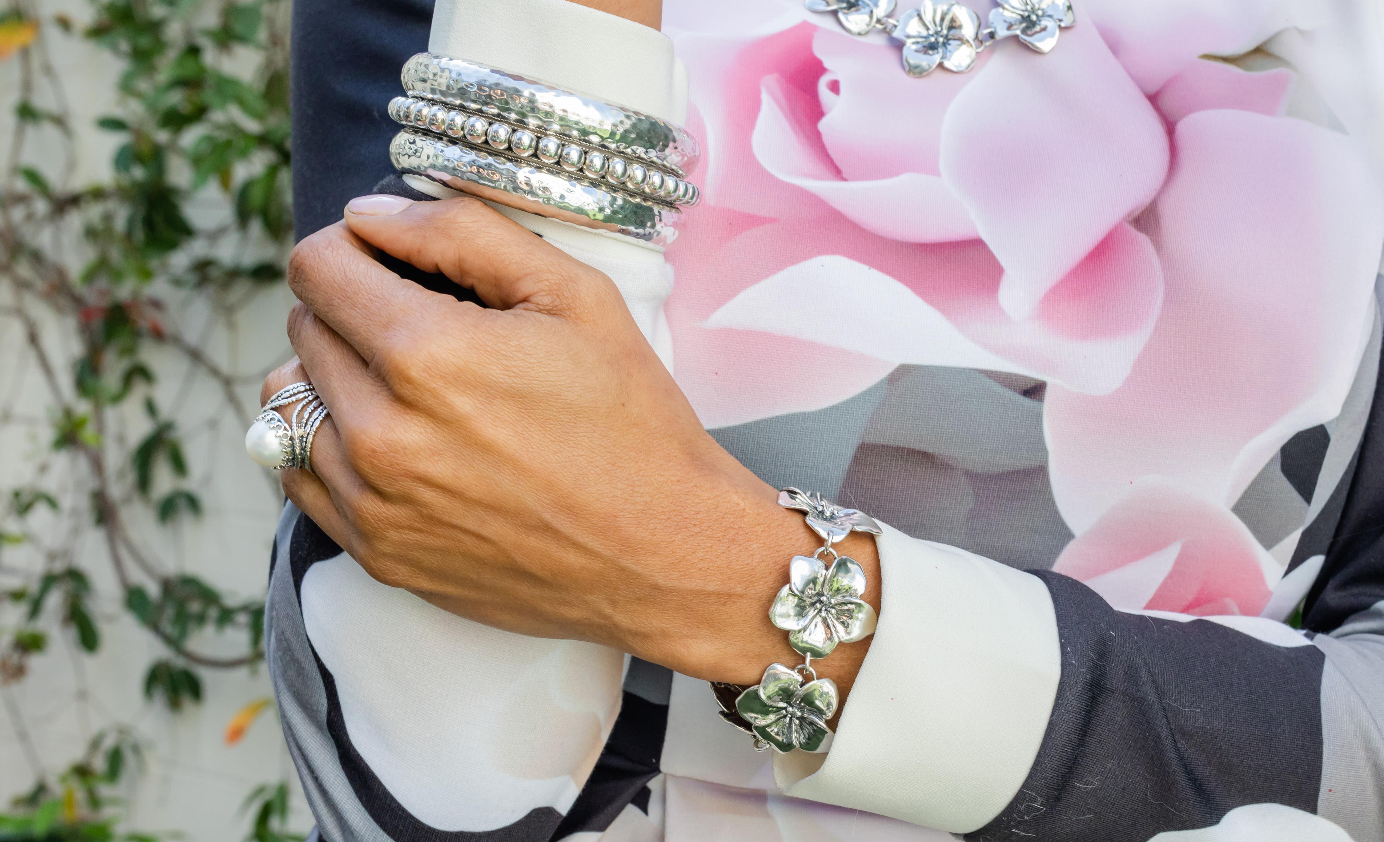 To maintain the original condition of your sterling silver jewelry, polish your pieces regularly using our polishing cloths. Never immerse your heirloom quality Opulenza pieces in chlorine, saltwater, mineral springs or suntan lotion. Avoid exposing your jewelry to hairspray, cosmetics and perfume, as this will cause tarnish. Household cleaners containing chlorine bleach will cause discoloration and can loosen gemstones.