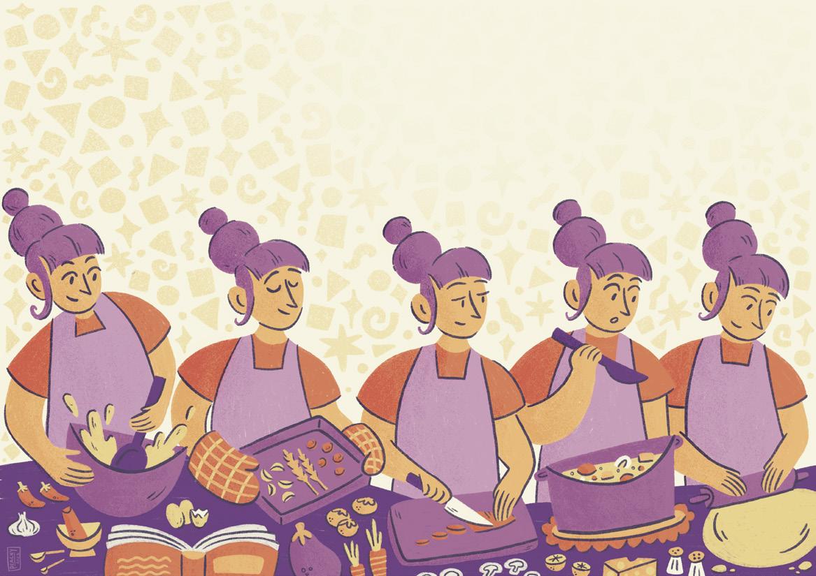 To achieve this look I carved my design of a passionfruit into a lino tile and then used purple ink to create the main shape. Then I carved into the lino a little more and used white, then yellow, and then blue to finish the passionfruit. This technique gives the print a very satisfying imperfect and unaligned finish and texture. I then scanned my artwork and edited layers in Photoshop to create a sense of depth.
