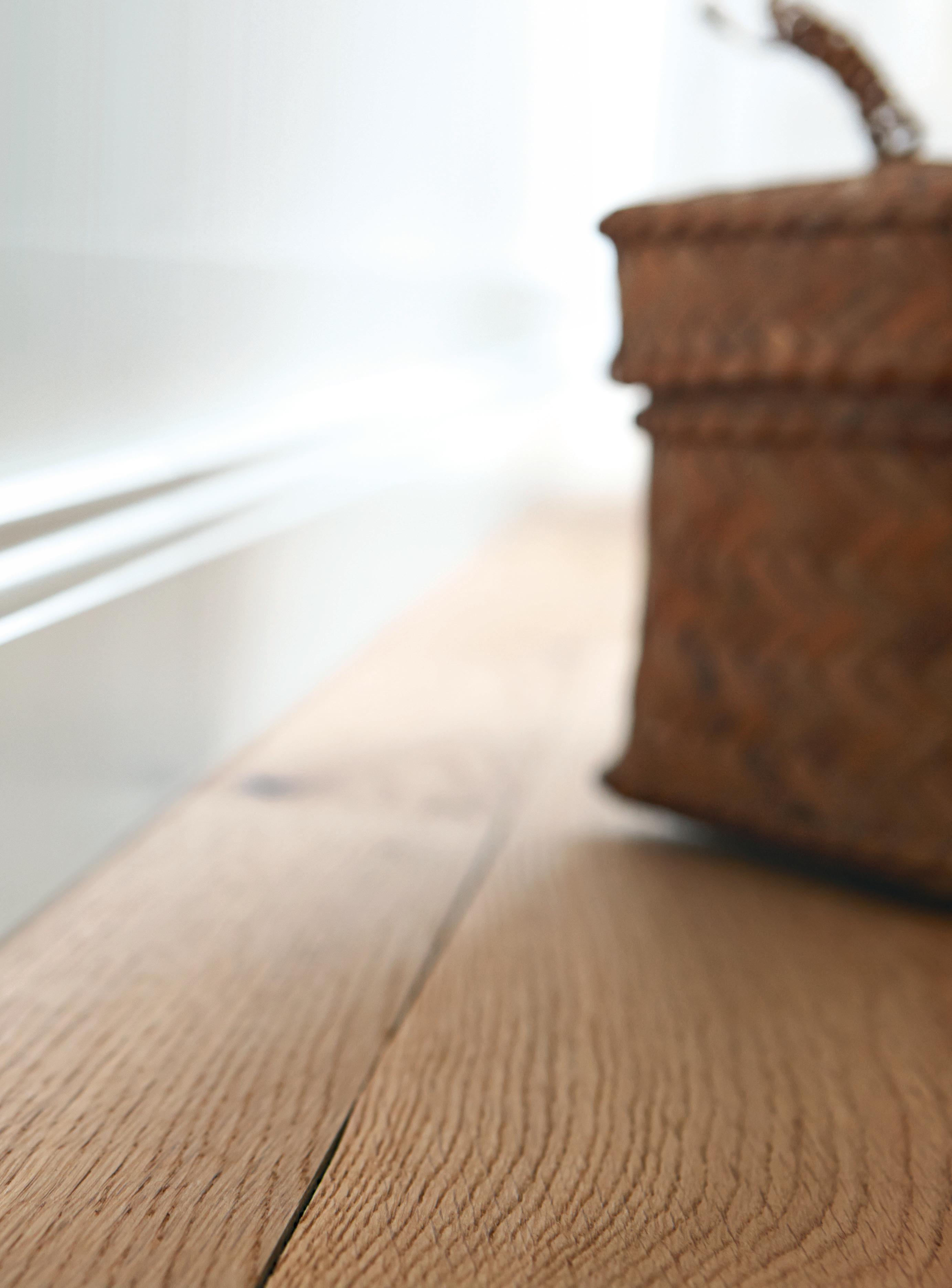 Weartec ® Nature -Oberfläche Natürliche Öle und Wachse dringen tief in das Holz ein und bilden eine schützende, atmungsaktive Oberfläche. Diese Form der Veredelung betont die Maserung sowie die Struktur, wirkt feuchtigkeitsregulierend und sorgt für ein gesundes Raumklima.