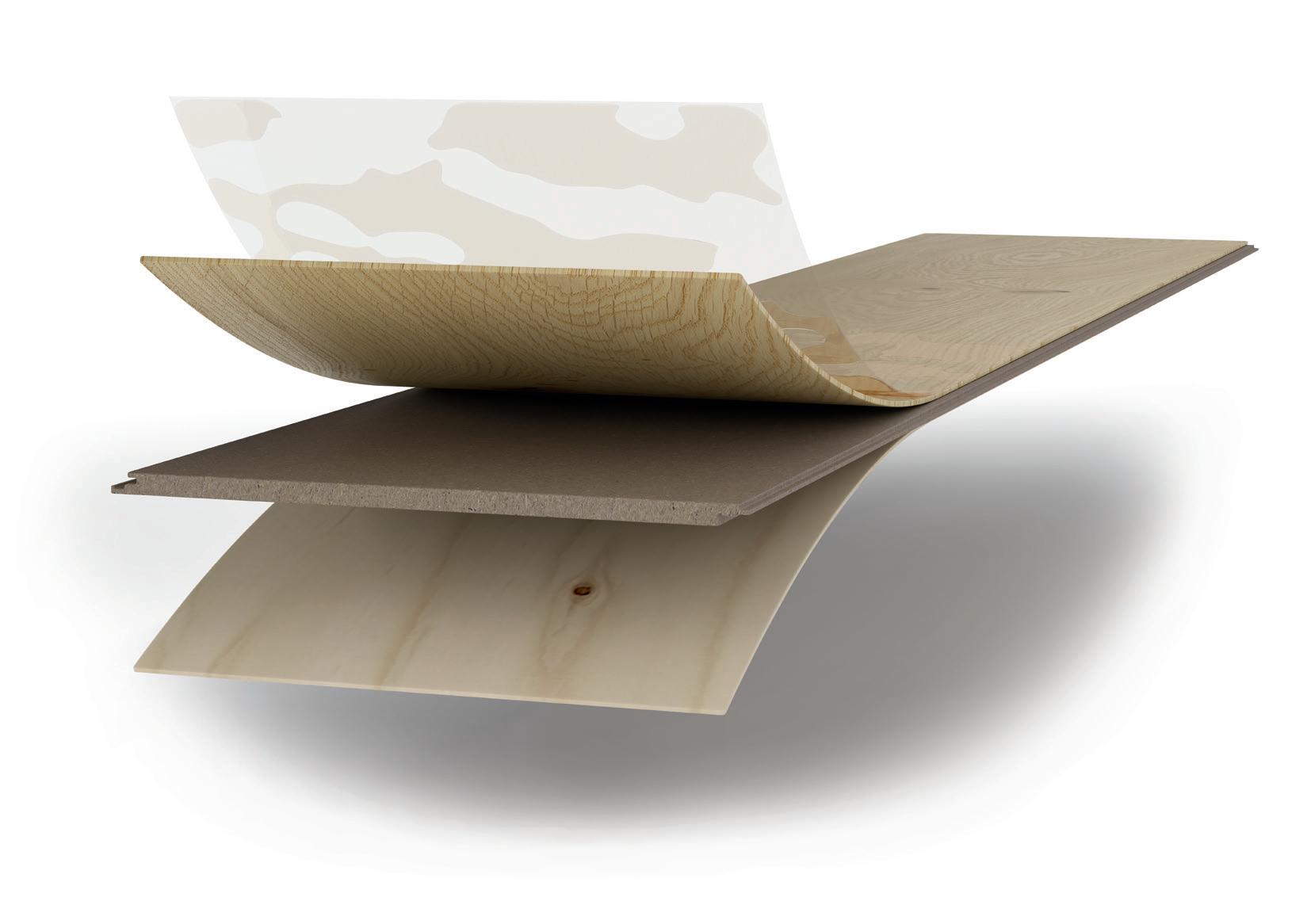 Mittellage Spezialverleimte HDF-Platte für eine einfache Verlegung, besondere Formstabilität und erhöhte Widerstandsfähigkeit gegen Eindrücke