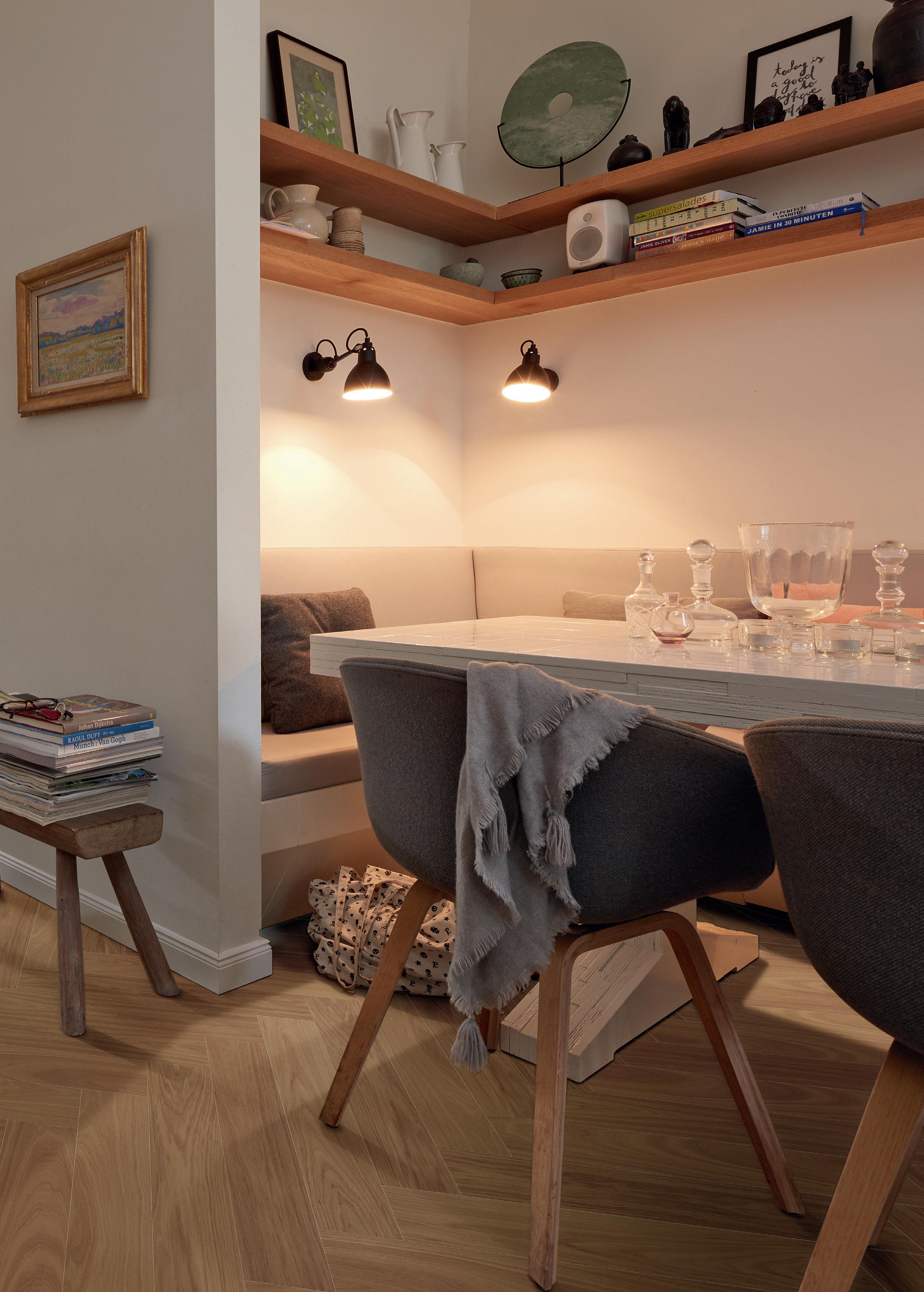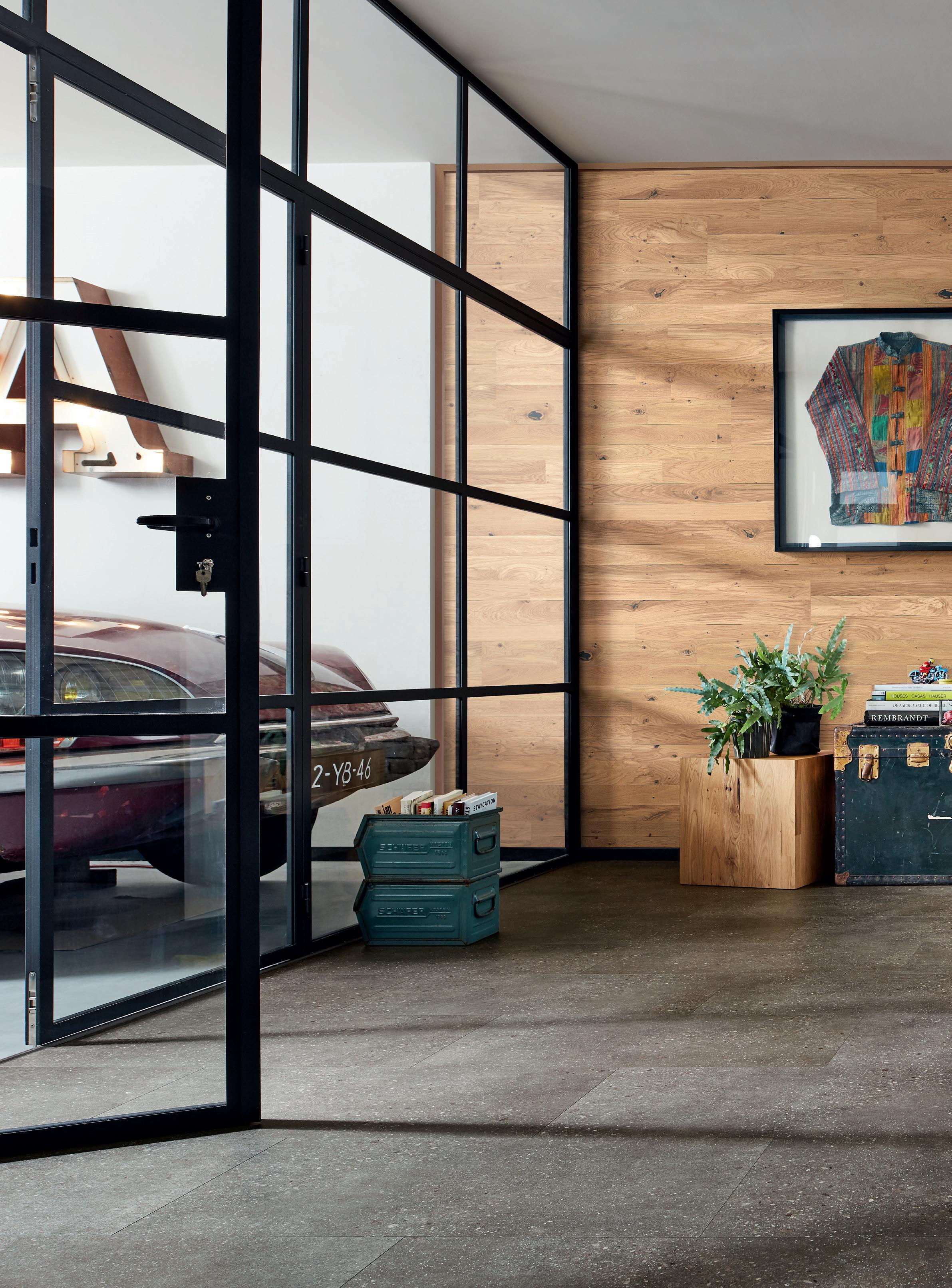 Ist das noch Boden? Oder schon Wand? Grenzen verschwimmen, wenn MEISTER den Bodenbelag in die Vertikale bringt. Wie das geht? Erstaunlich einfach! Ein simples System aus Metallschienen und Befestigungsklipps sorgt dafür, dass Longlife-Parkett auch an der Wand eine gute Figur macht. Das ist echtes Leben in der dritten Dimension.