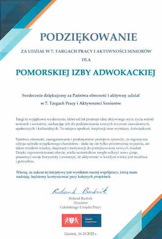 16 października 2025 roku przedstawiciele Pomorskiej Izby Adwokackiej uczestniczyli w 7. Targach Pracy i Aktywności Seniorów, organizowanych przez Gdański Urząd Pracy. Wydarzenie odbyło się w przestrzeni Centrum Wystawienniczo-Kongresowego AMBEREXPO w Gdańsku. Wydarzenie, od lat uznawane za jedno z najważniejszych w regionie spotkań dedykowanych osobom starszym, ponownie zgromadziło licznych wystawców, instytucje publiczne oraz organizacje społeczne działające na rzecz seniorów.
