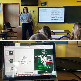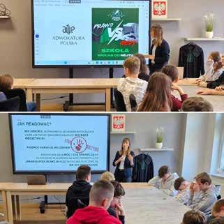 czą. Adw. Marta Fiszka-Subocz i Adw. Aleksandra Lubowska przedstawiły obowiązki prawne szkoły, procedury dokumentowania zdarzeń oraz sposoby prowadzenia rozmów zarówno z uczniami, jak i z rodzicami. Ponad dwustu uczestników tego spotkania podkreślało, jak często zjawiska te dotykają środowiska szkolne i jak bardzo potrzebne są spójne, jasno opisane procedury oraz wsparcie specjalistów, którzy potrafią połączyć wiedzę prawną z doświadczeniem w pracy z młodzieżą.