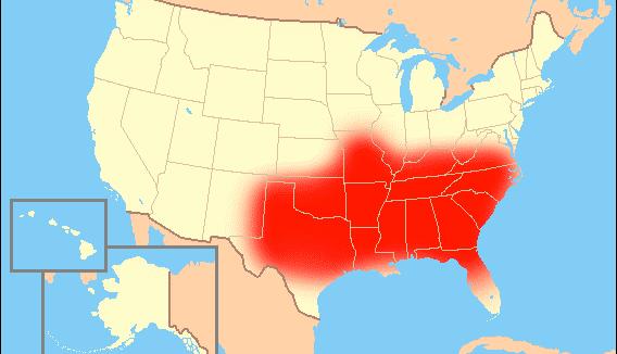 Rys. 2. Tzw. pas biblijny w USA, czyli obszar stanów południowych i wschodnich, na którym przeważa społeczność o poglądach konserwatywnych (ewangelikalni protestanci); https://psycnet.apa.org (dostęp: 16.11.2025).