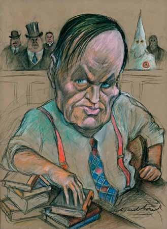 Rys. 1. Karykatura Clarence’a Darrowa, obrońcy Johna Scopesa w tzw. „małpim procesie”; https://www.newyorker.com/magazine/2011/05/23/objection (dostęp: 16.11.2025).