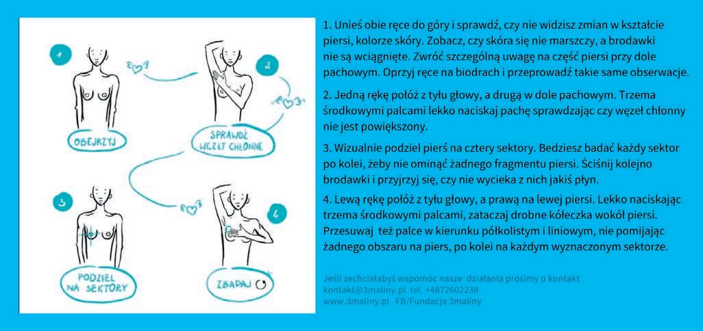 nego w pomoc i wsparcie dla kobiet dotkniętych nowotworem piersi. Jest nie tylko pomocą odbarczającą, ale również duchową podporą tak bardzo potrzebną w chwilach poczucia osamotnienia. Dla osób, które przeszły przez chorobę nadaje sens niesienia pomocy innym – tak jest w moim przypadku. Malinowe spotkania pozwalają mi na przekazywanie wiedzy i doświadczeń z zakresu profilaktyki, walki z samą chorobą jak również życia po zabiegu. Są jednocześnie miejscem, gdzie spotykają się ludzie dobrego serca, chętni do niesienia bezinteresownej pomocy innym. To daje największą otuchę i radość”.