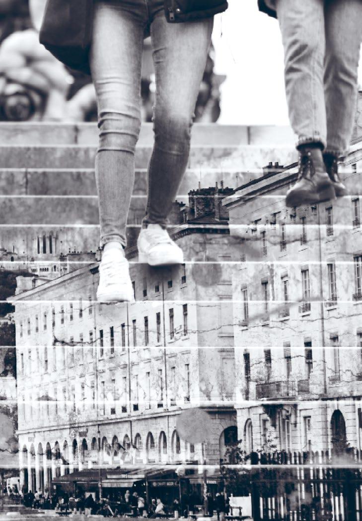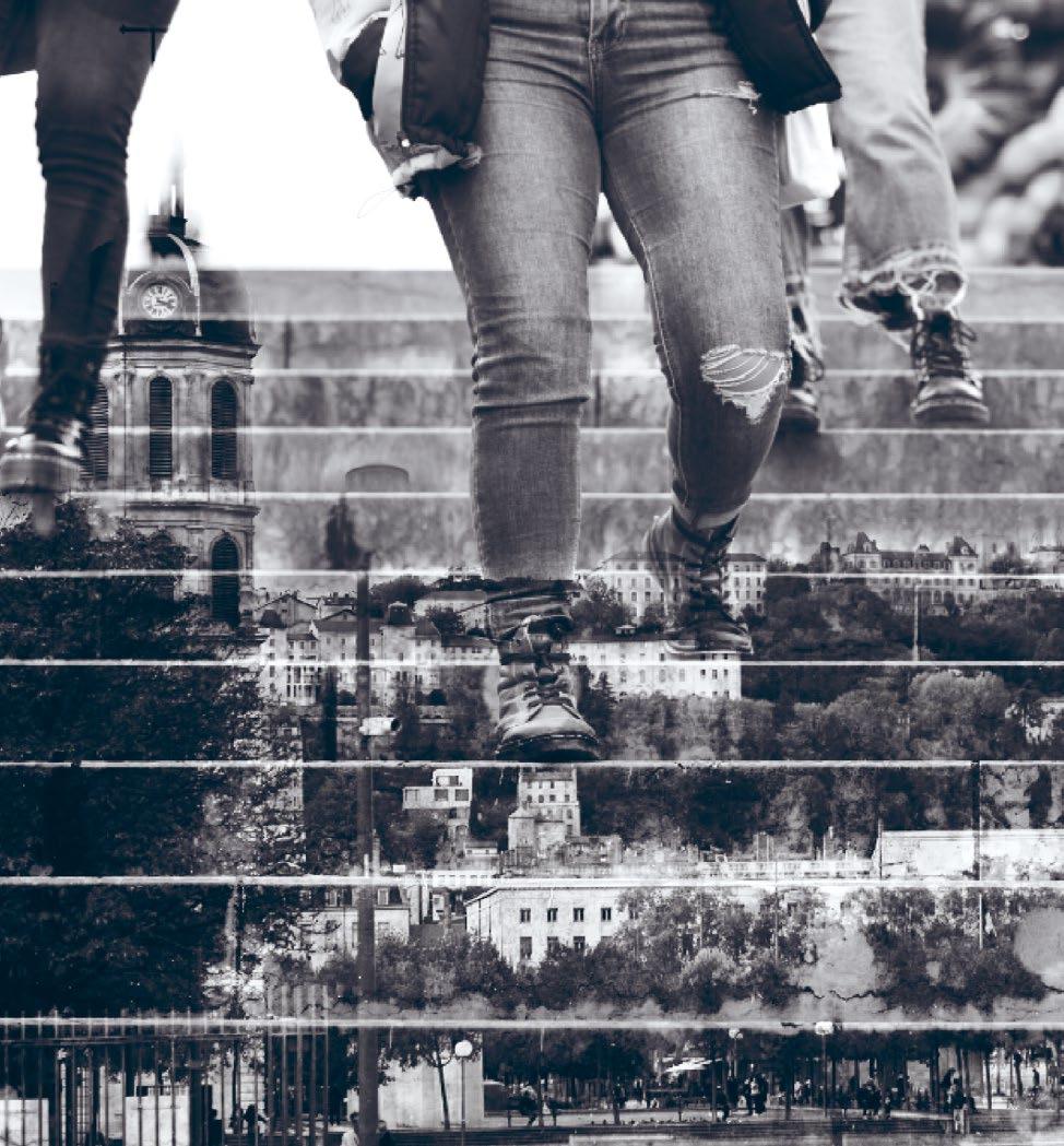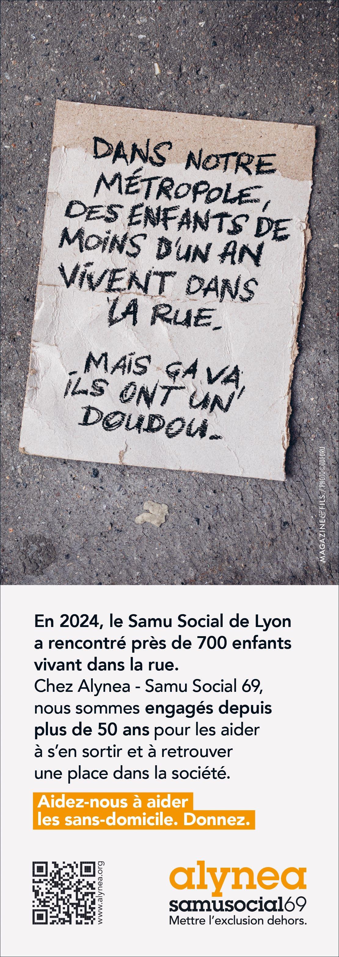 Photos aux murs et extraits du Journal du dehors d’Annie Ernaux suspendus au plafond composent l’accrochage Images de ville, sur le thème de la ville, révélant ensemble notre paysage quotidien. Mais pas n’importe comment. Les extraits du roman du prix Nobel de littérature 2022, courts et incisifs, sont mis en forme avec plusieurs typographies inédites, conçues par de jeunes créatrices. Leur universalisme renvoie chaque lecteur à sa propre expérience ordinaire de la vie. Quant aux images, ce sont celles d’étudiants de l’université Lyon 2 et de l’École d’architecture, réalisées dans le cadre du concours organisé par la Société académique d’architecture de Lyon. Les photographes en herbe ont chacun choisi comme point de départ un extrait du roman, pour l’interpréter en cinq instantanés de vie urbaine. En couleurs ou en noir et blanc, racontant une histoire ou énigmatiques, (apparemment) objectives ou tordant la réalité par des effets optiques ou des cadrages inattendus : malgré les partis pris très personnels, chaque prise de vue résonne intimement en chacun et interpelle notre relation avec le paysage urbain. Ah oui, en levant les yeux, on peut voir les choses comme ça ! En se couchant sur les pavés, comme ça aussi !… On (re)découvre ce que l’on connaît par cœur pour le croiser chaque jour, mais sans vraiment y porter attention. Une façon sensible de se dessiller et (re)devenir conscient de la ville qui nous entoure. Ouvrir les yeux, ça ne fait pas de mal !