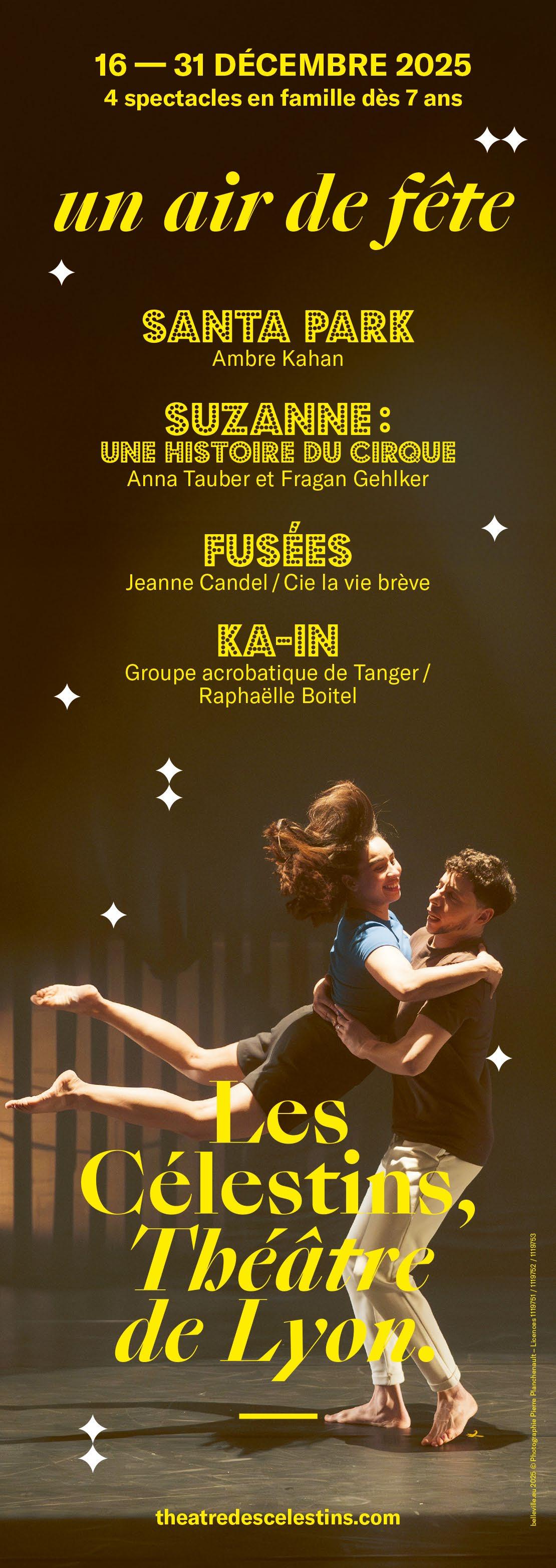 Après les Nuits de Fourvière cet été, KA-IN du Groupe acrobatique de Tanger revient pour les fêtes dans la salle rouge et or des Célestins. Mis en scène par Raphaëlle Boitel, cet opus célèbre la diversité des talents des treize interprètes, avec huit disciplines représentées, dont le hip-hop et le popping Courant dans tous les sens, s’envolant dans les airs et réalisant d’incroyables culbutes, ils s’en donnent à cœur joie pour démontrer leur vitalité et celle de leur cité. Les lumières, toujours splendides chez Boitel, cisèlent les corps, les enrobent, les lacèrent aussi pour donner à voir la richesse et les espoirs d’une jeunesse d’aujourd’hui. GV-P 23 > 31 DÉC. Théâtre des Célestins 16 > 18 DÉC. MC2: Grenoble (38)