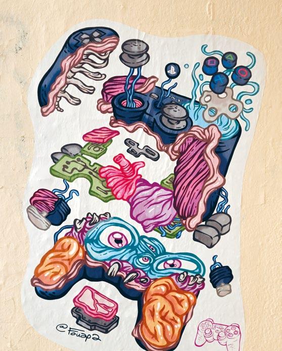 CRÉATURES ANIMALES ET FLORE EXOTIQUE, INSPIRÉES DE L’ÎLE DE LA RÉUNION OÙ ELLE A GRANDI. À LYON, LA DISCRÈTE A INTÉGRÉ LA PROMO 2025 DE LA GALERIE OMART ET PARTICIPE À L’AVENTURE AIRT DE FAMILLE. CHOPER LÈVE LE MASQUE. AIRT DE FAMILLE > 04 JAN. 26 Centre d’échanges de Perrache Lyon 2 airtdefamille.fr omart.fr @choper_974