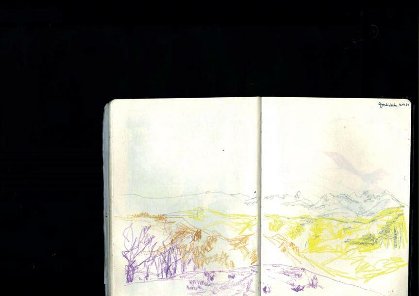 Dans les journaux on parle d’itinérance. De ses effets aujourd’hui, problématiques ou simplement factuels. Une nouvelle route migratoire arrivant par l’Espagne transforme le Pays basque en terre d’accueil pour des centaines de migrants venus d’Afrique subsaharienne. Dans le sens inverse, les oiseaux migrateurs débutent leur vol pour aller hiverner. Lisant cela, je suis moimême en vadrouille à pied et à vélo et je croise des dizaines de gens en shorts et chaussures de rando qui suivent les petits coquillages cloués aux poteaux de bois. On m’invite à venir à la fête de la transhumance qui verra les troupeaux redescendre des estives à l’automne. Je me rends compte que ces bêtes que j’avais l’habitude de voir en hauteur quand je randonnais petite ne sont pas d’étranges habitants de ces sommets mais qu’ils n’y passent qu’une partie de l’année.