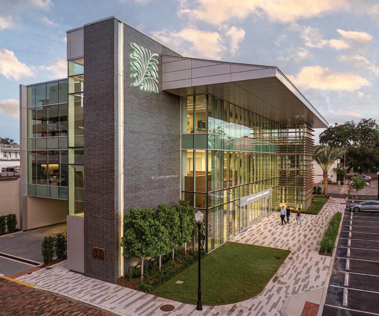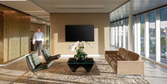 features panoramic views of Winter Park and breakout areas for team meetings and idea sharing. With the details and warm atmosphere, it has more of a residential feel and includes comfortable and sculptural furnishings by Sir David Adjaye, Knoll, Herman Miller and Geiger Furniture.