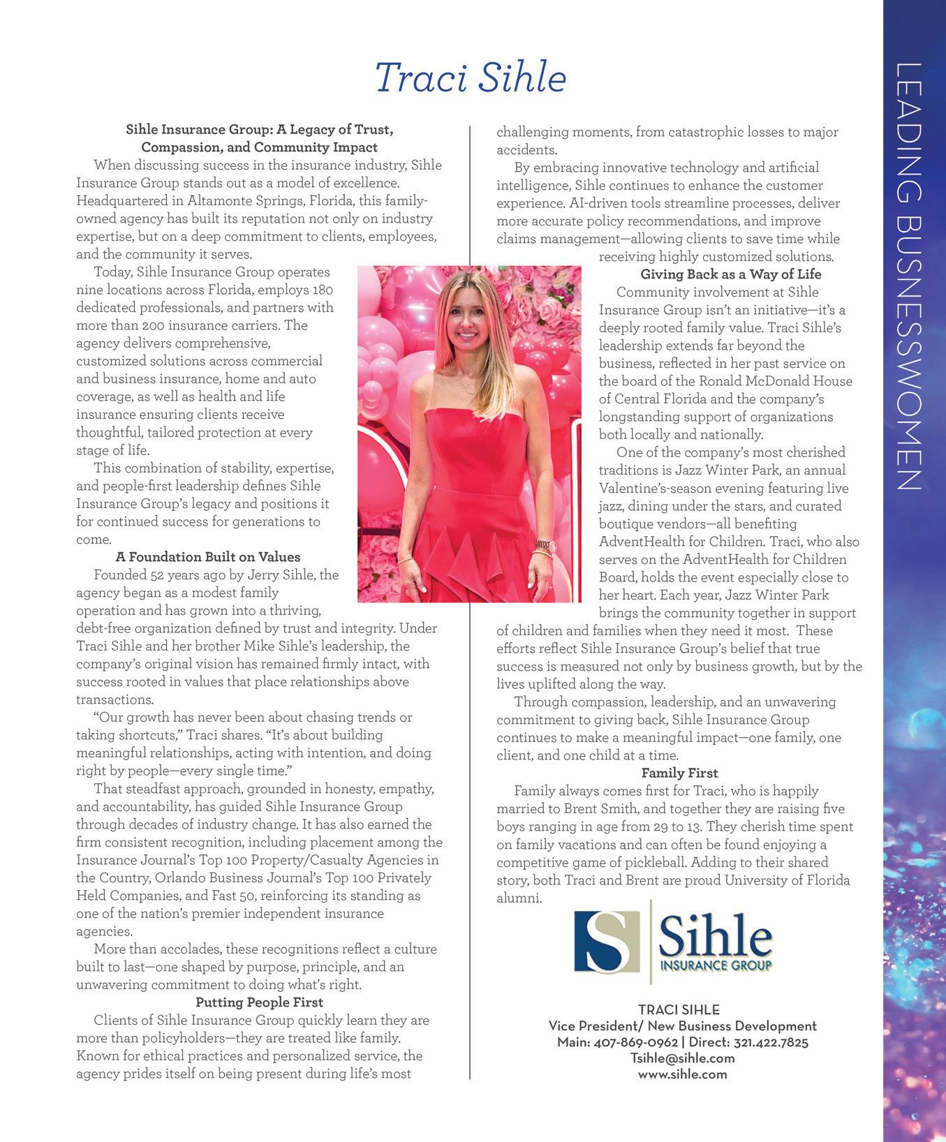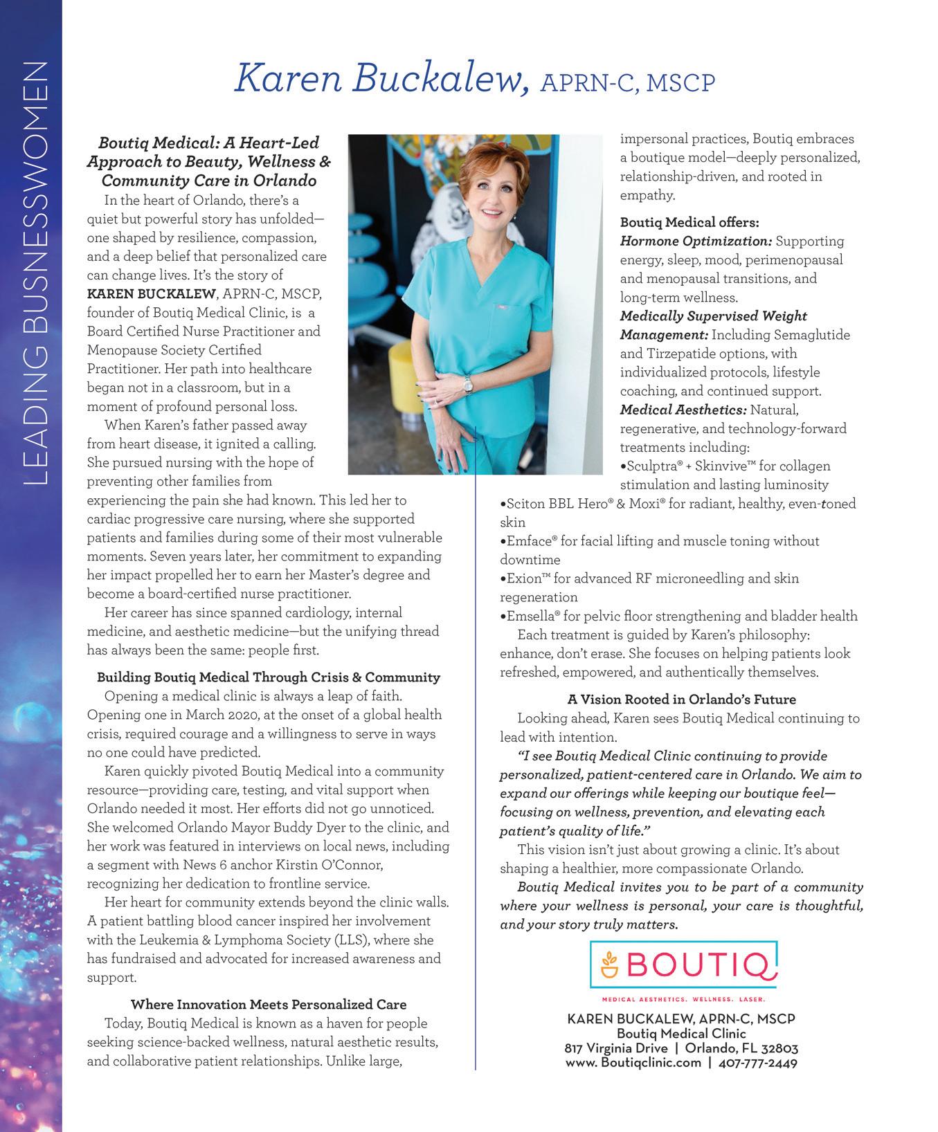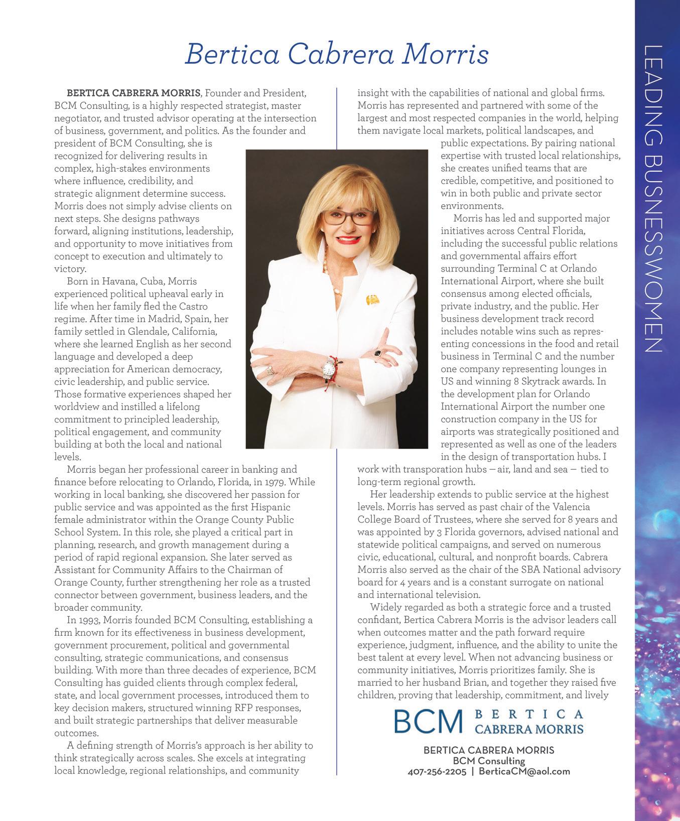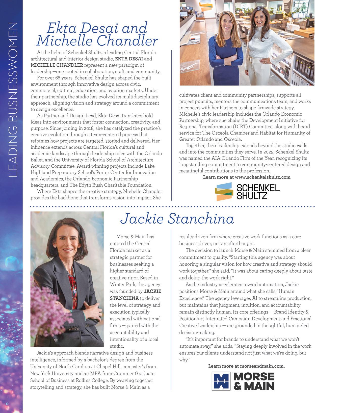 This series of special promotions, highlighting outstanding women in Central Florida, focuses on women who are accomplished and dedicated to their careers and community.