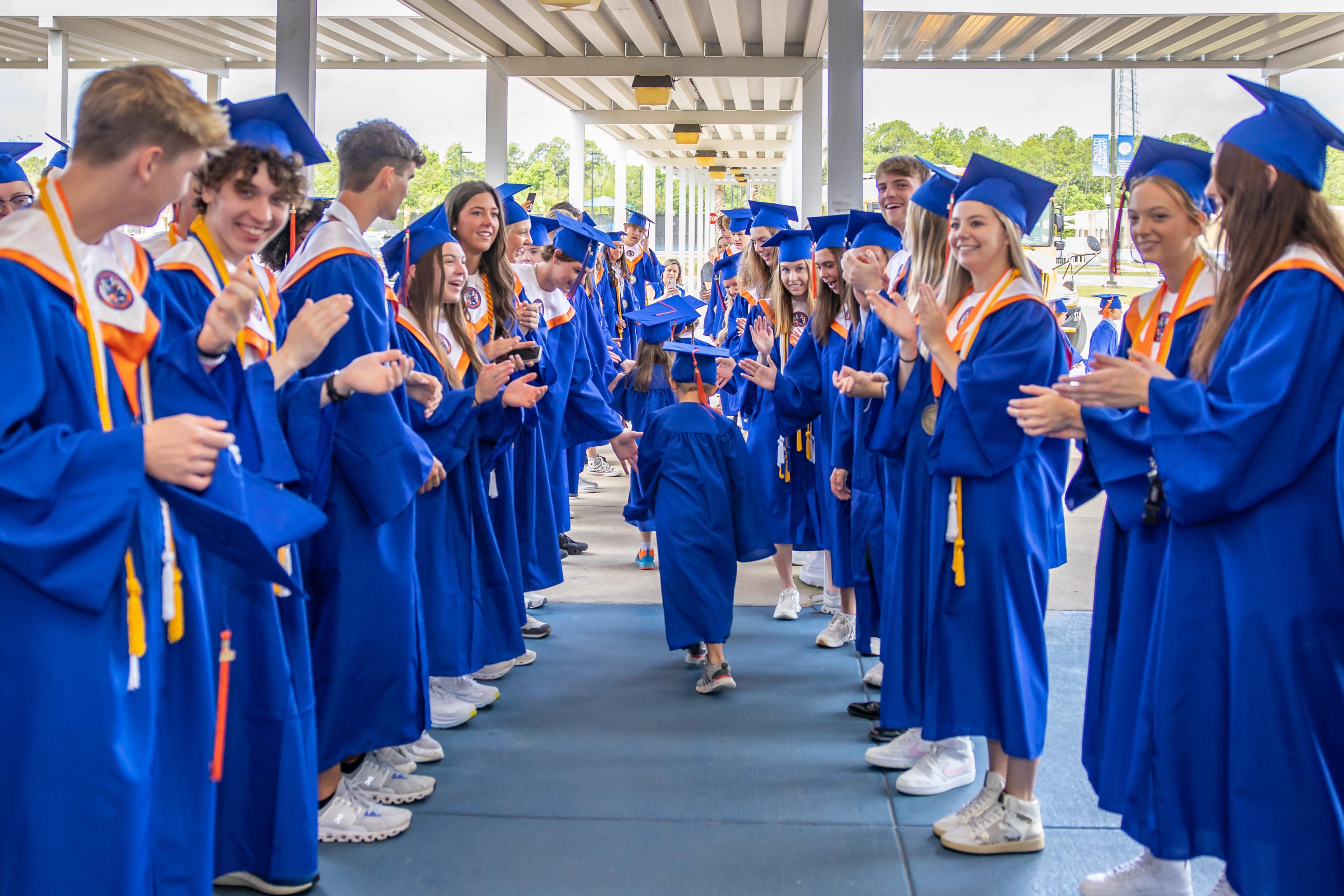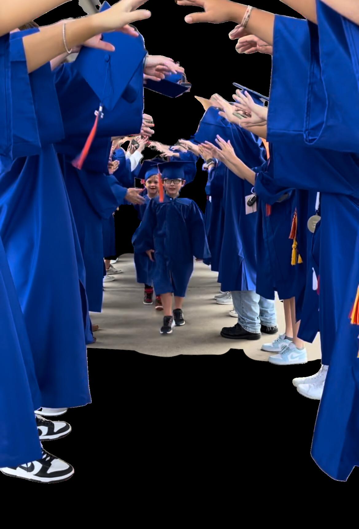 A "new" tradition for OBCS, our seniors returned to Orange Beach Elementary School to walk the halls for the last time Greeted with cheers and high-fives from the student-lined path, they were cheered for their accomplishments. However, the members of the Class of 2023 were not the only ones celebrated. Our kindergarten graduates enjoyed the same fanfare! They were precious in the matching caps and gowns as they walked through the "spirit tunnel" created by the seniors. Building a tradition takes time, but this will certainly be an event that we will now look forward to each year. A special thank-you to the OBES administration staff for making this a possibility! We are truly creating a lasting legacy!