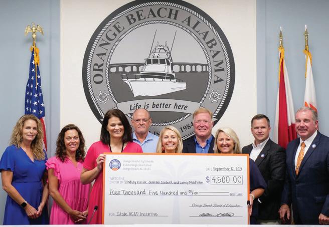 Orange Beach Middle & High School junior Paige Lipke was honored for earning a perfect composite ACT score of 36—twice. Orange Beach Elementary School third-grader Emery Adam Pate was named an honorary Junior Officer by the Orange Beach Police Department, and the day was officially proclaimed “Emery Pate Day” by Mayor Tony Kennon and the City Council.