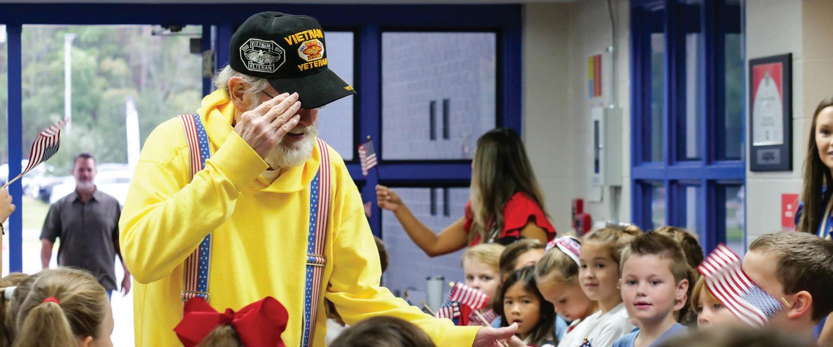 Orange Beach Elementary School’s 2024 Veterans Day Program was a heartfelt tribute to the brave men and women who have served our nation. The event featured student-led poetry recitations, performances by the OBES Choir, and songs performed by the entire study body that filled the auditorium with pride. As veterans arrived, they were warmly greeted by smiling first graders and welcomed into a celebration of service and sacrifice. Moving video interviews—created by student Peighton Proctor as part of her Red Ribbon Week campaign—offered personal glimpses into the lives of local heroes. It was a meaningful day of honor, gratitude, and community.