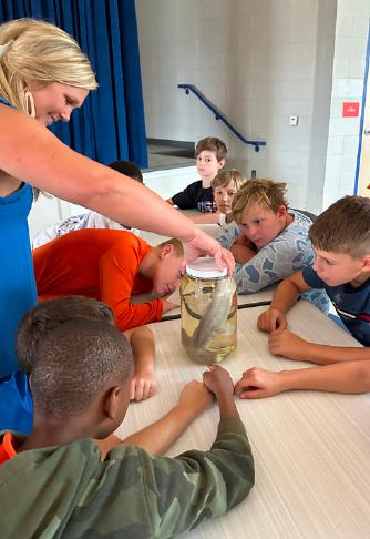 Visiting OBES, they presented a hammerhead shark pup, explained how it came into their possession and taught students more about the wildlife along our beaches. Our fifth grade enjoyed shrimping, surveying birds, and learning more about our ecosystem. Our sixth grade took their first field trip with Coastal Resources to Robinson and Bird Island to explore wildlife and other living organisms in the water using drones.