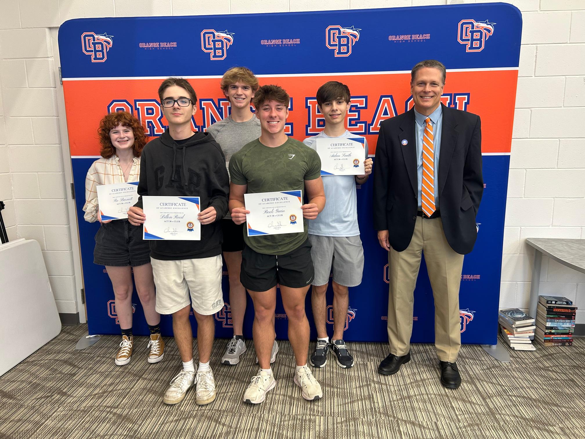 There is a lot to celebrate when it comes to ACAP scores! Orange Beach City Schools placed 11 times in the Top 10 for the state of Alabama! Our teachers and students have worked tirelessly in the classroom, and the effort was reflected in their scores. ACAP pep rallies at both schools recognized teachers and students for their accomplishments. Both Finn Bussey and Antony Gomes had PERFECT scores at OBMHS, and Afton Tice, Ruth Kincaid, Brooks Morrison, and Henry Thomas had PERFECT scores at OBES.