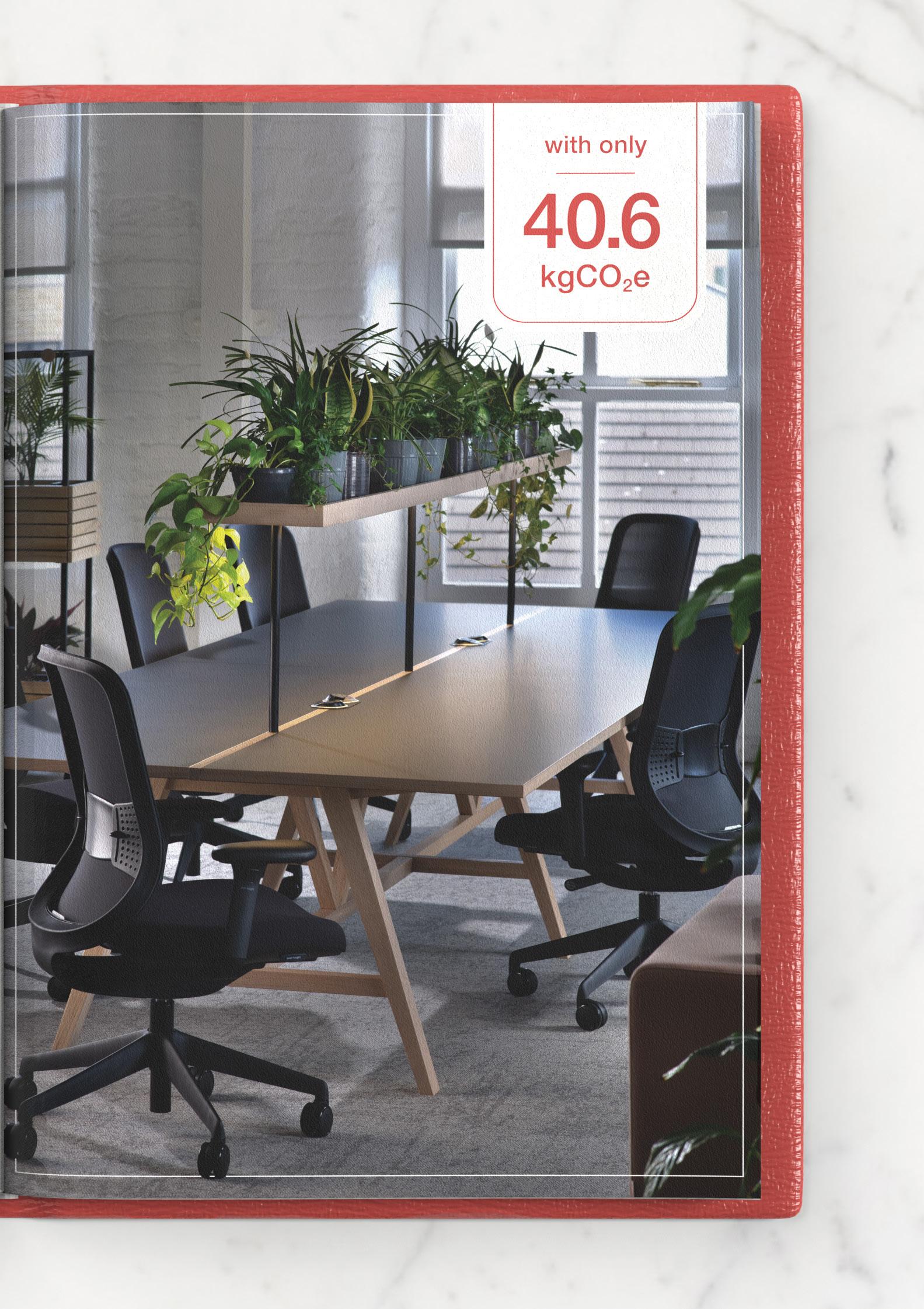 Emissions generated from creating the raw materials used in the chair, principally technical polymers, steel and aluminium. Using recycled material grades has helped us significantly reduce this element of the footprint.
