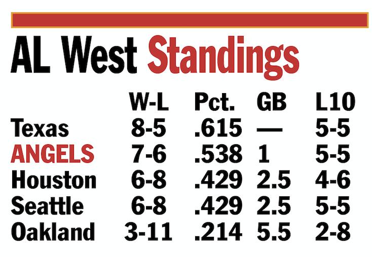 The loss in the first game of the three-game series dropped the Angels’ record to 7-6. They