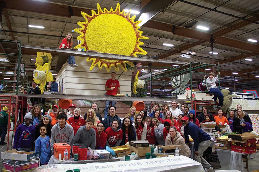 Over Christmas Break, OLu volunteers will help share the love of Jesus by prepping and gluing flowers onto parade floats.
