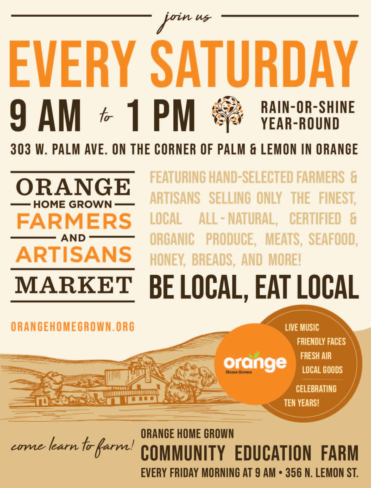 Show your farmer’s market pride by dressing in the color we love, Orange!! 303 W Palm Ave / OrangeHomeGrown.org