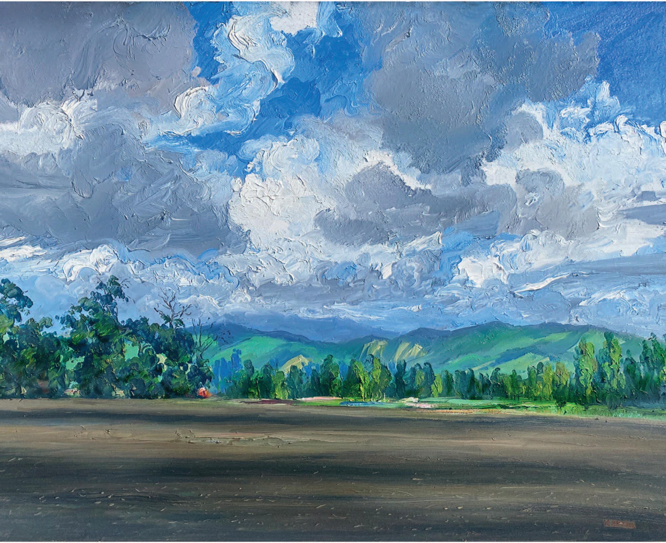 “ Big Catch ” by Charlie Dye , 1960s Oil on Board / 25.75” x 19.75"