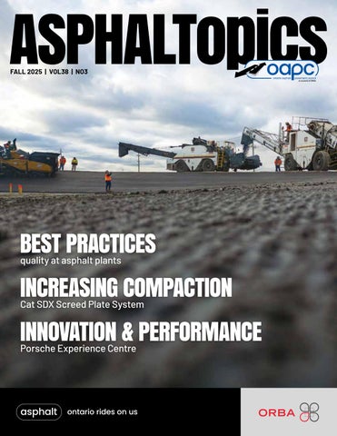 For the 2026 ORBA Convention in February, I am very excited that we will have an asphalt-themed plenary session as we continue to integrate asphalt-related topics into the convention lineup. We will have Carsten Karcher, SecretaryGeneral of the European Asphalt Pavement Association (EAPA) speaking to us about Asphalt 4.0. It is an EAPAdeveloped program that focuses on using innovation, digitization, and automation to increase productivity in the asphalt sector. This also ties in nicely to the convention theme: Connecting Ontario: Infrastructure Growth and the Power of Partnership. We hope to see you at this wellattended event that also includes two keynotes from Dan Gardner, an award-winning journalist and bestselling author, and the one and only Dr. Hayley Wickenheiser.
