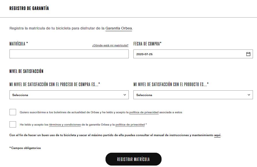 In order to benefit from the Orbea lifetime warranty extension, you must register your bicycle within 30 days of its purchase at: