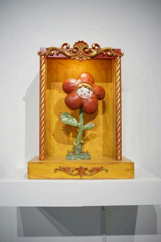Instalasi tersusun dalam satu garis panjang sebagai gambaran alur batin manusia. Bunga terawetkan menghadirkan tubuh dan memori.