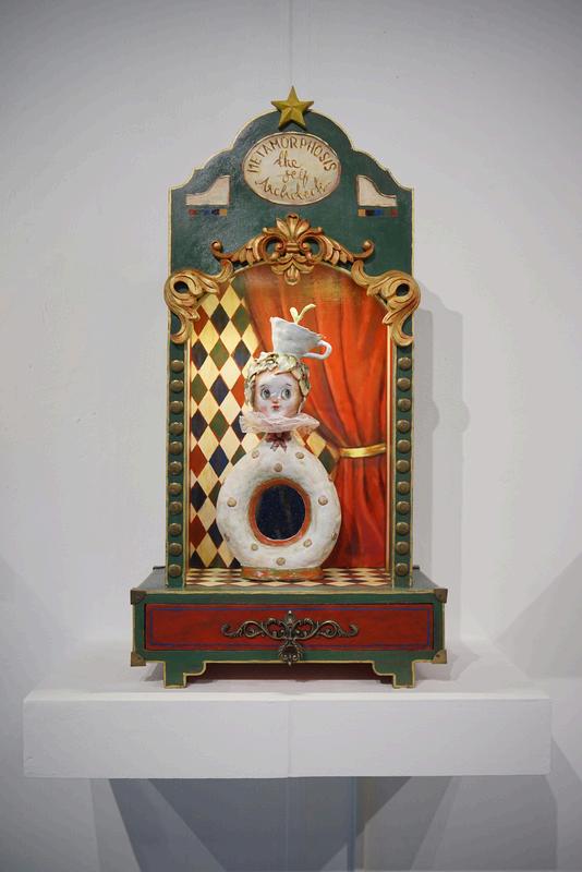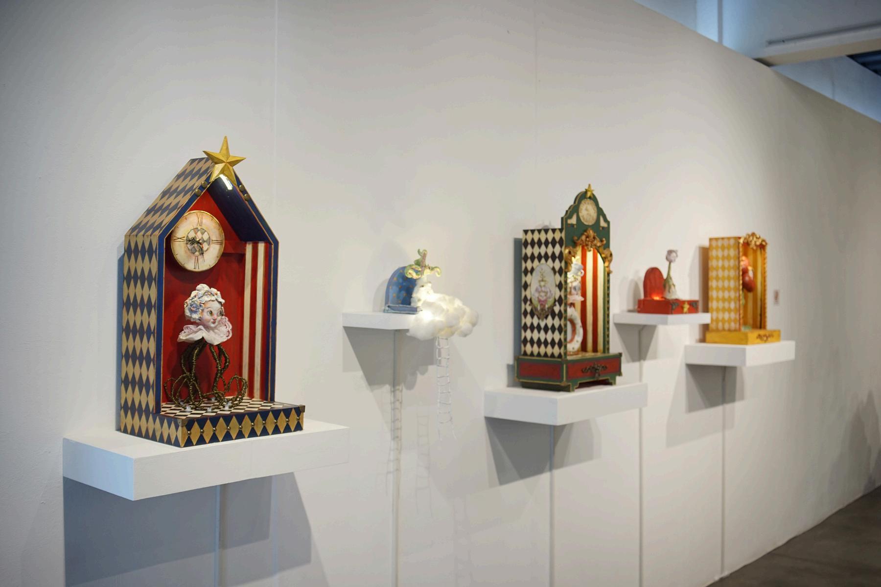 Ufa Faizah (Situbondo), mencoba menganalisa lebih runut ihwal fase penempaan diri melalui “Metamorphosis: The Self Architect” Ufa menyoroti krisis identitas yang berawal dari dogma keluarga, ekspektasi masyarakat, atau tuntutan budaya yang ditanamkan sejak dini berfungsi sebagai matriks yang memaksa individu untuk berkamuflase demi menghindari konflik dan penolakan Karya ini mendalami proses perjalanan individu secara sadar bertransformasi dengan merancang, membangun dan membentuk struktur dirinya sendiri Proses ini bagi Ufa adalah siklus perubahan mendalam yang terjadi dalam lima fase krusial: Dekonstruksi, Eksplorasi, Identifikasi, Integrasi, Manifestasi Hal itu ia gambarkan melalui simbol rumah kayu penuh warna dan sejumlah makhluk ganjil yang imajinatif