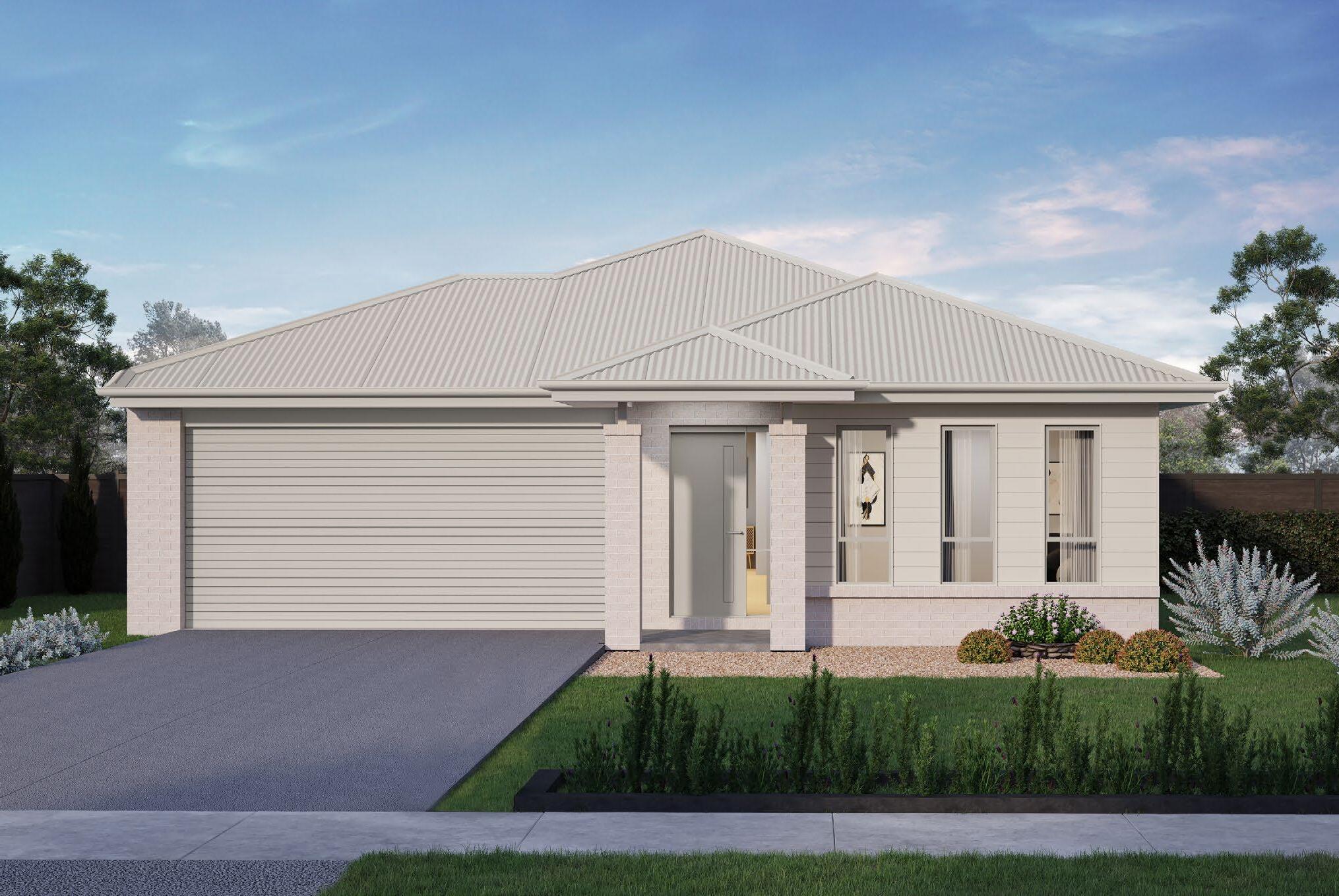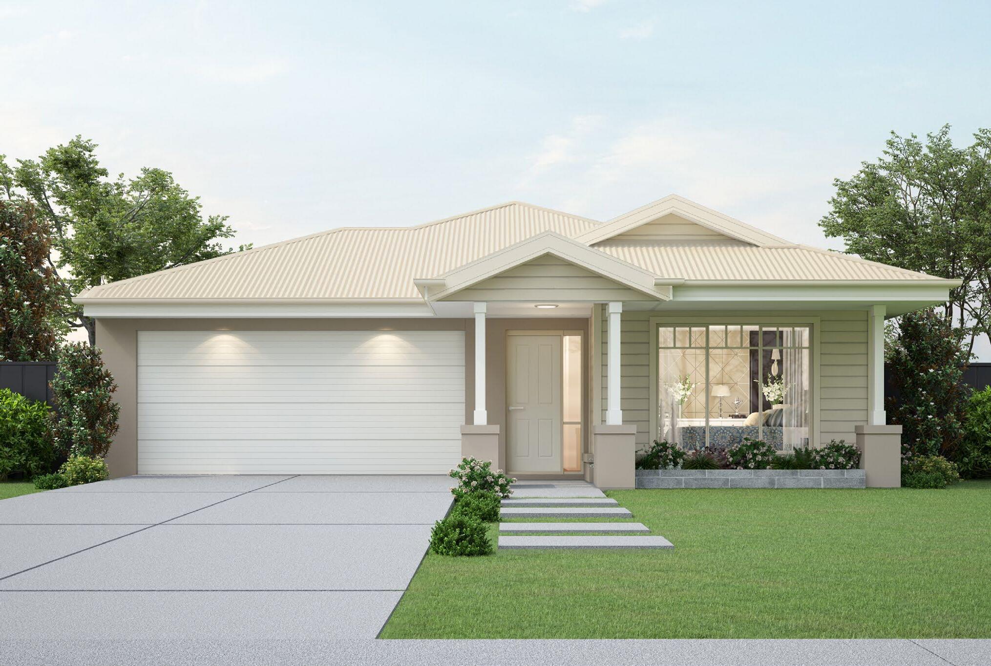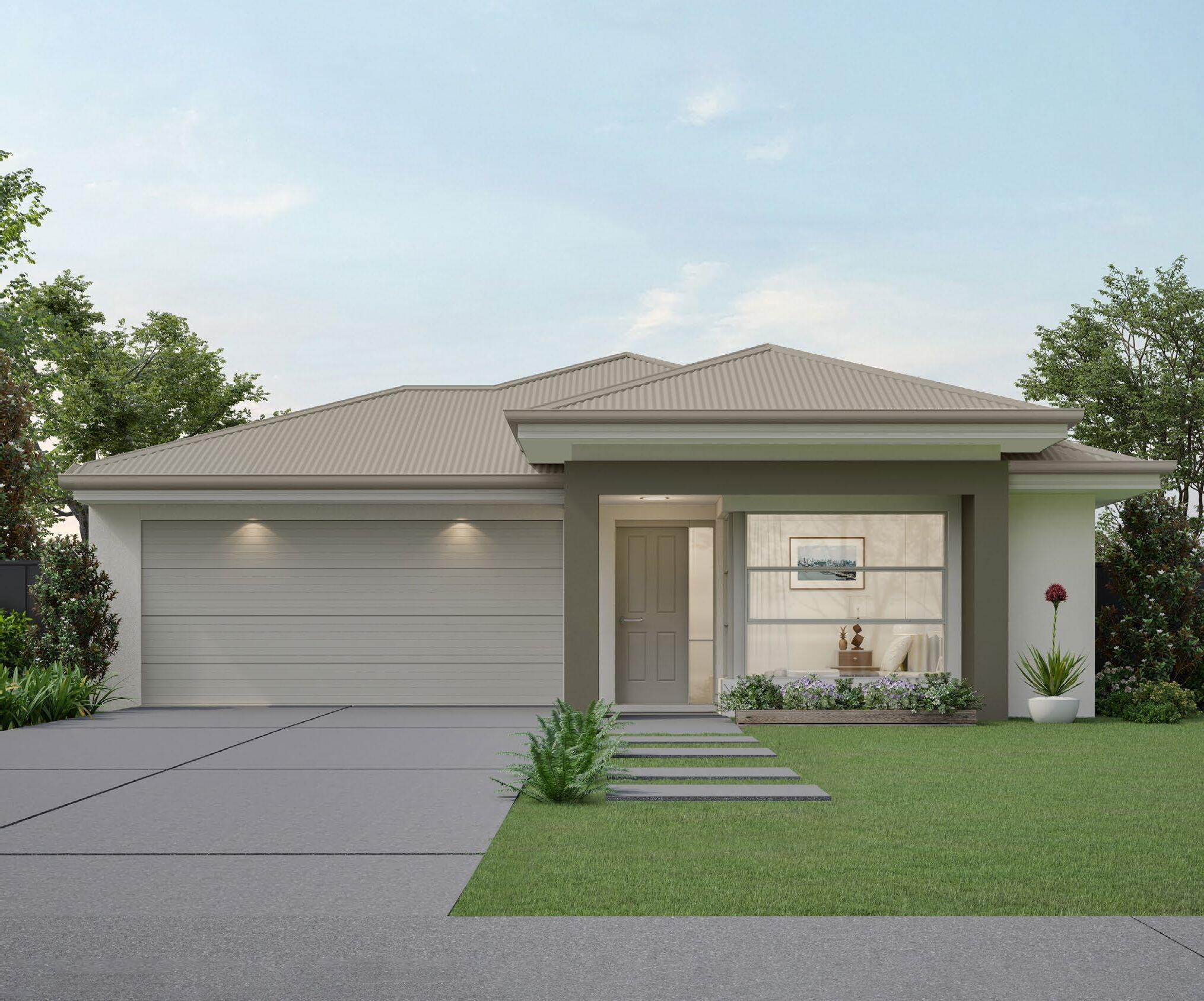12.1 Double garage with colorbond corrugated hip roof including painted FC sheet or EPS (design specific) infill over garage door, plaster ceiling and concrete floor.