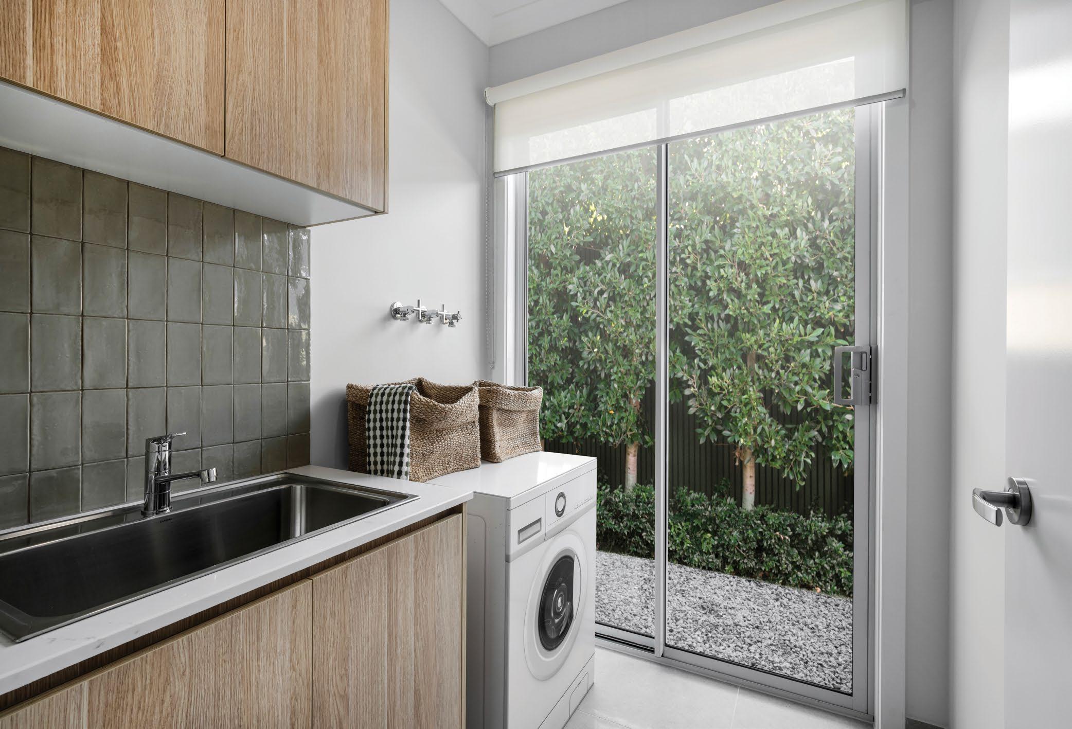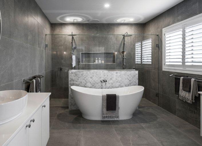 Includes Caroma Urbane II white inset vanity basins to Bathroom & Ensuite in lieu of standard; Caroma Urbane II white hand basin to Powder Room (Design specific); Caroma Urbane II chrome tapware to basins, bath and shower compartments in lieu of standard; Caroma Urbane II chrome Rail Shower to Bathroom & Ensuite shower compartments in lieu of standard; Caroma Urbane II chrome sink mixer to the Kitchen in lieu of standard.