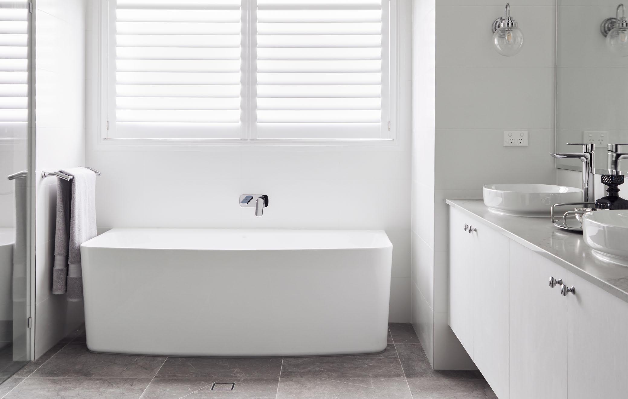 Bath: Caroma Luna white acrylic 1525mm Four Tile Flange