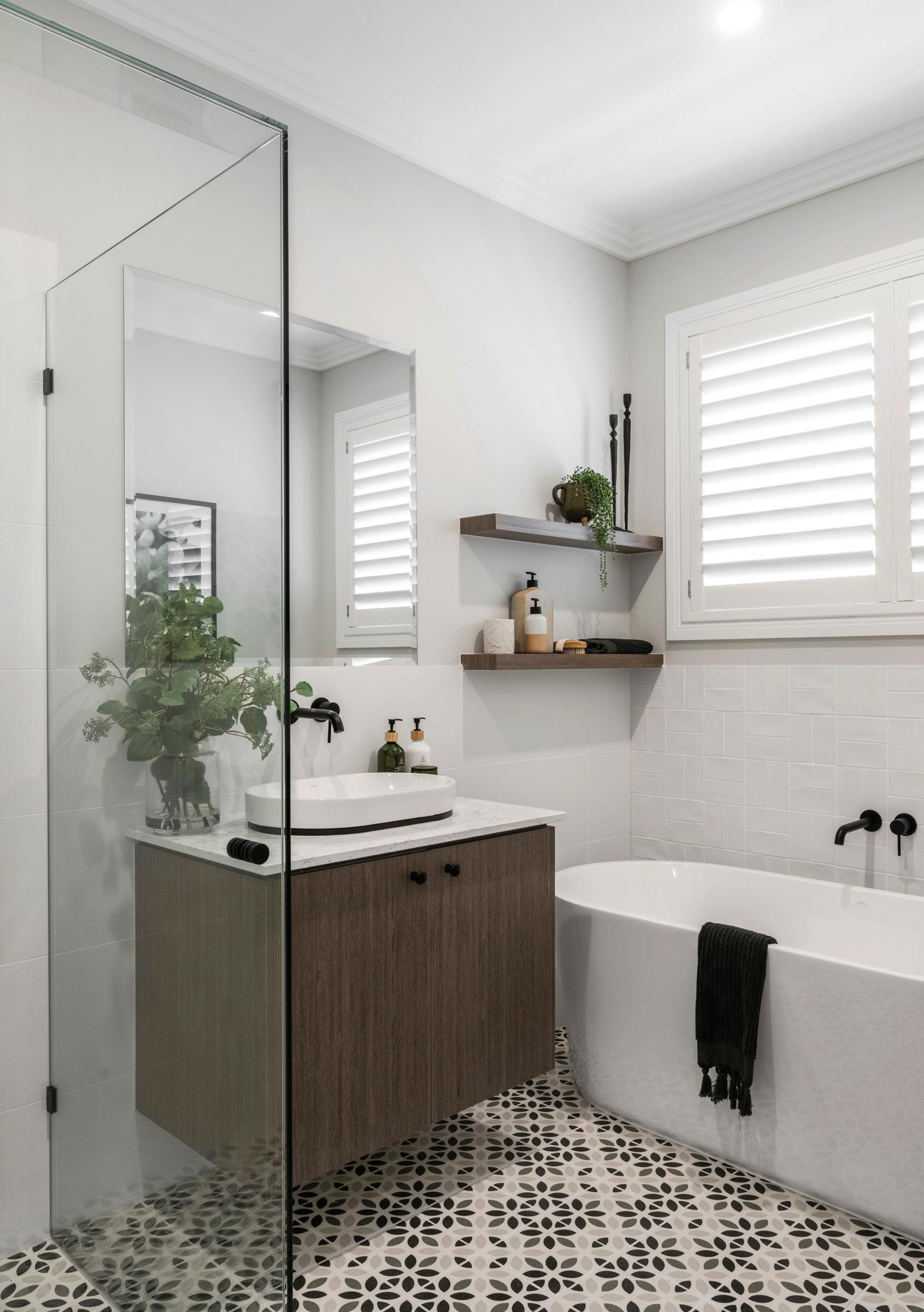 FREESTANDING BATH WITH CAROMA LUNA WALL MIXER & OUTLET TO ENSUITE DOUBLE STOREY HOMES ONLY (DESIGN SPECIFIC)