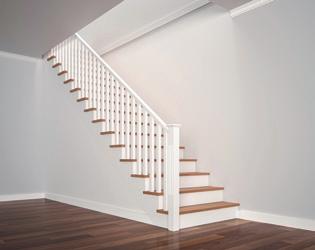 STAINED TIMBER TREAD STAIRCASE TO DOUBLE STOREY HOMES WITH PAINTED POSTS, BALUSTRADE & RISERS (PLAN SPECIFIC)