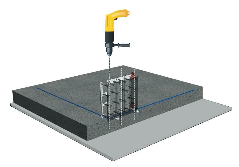 Repeat the drilling process as you work along the wall