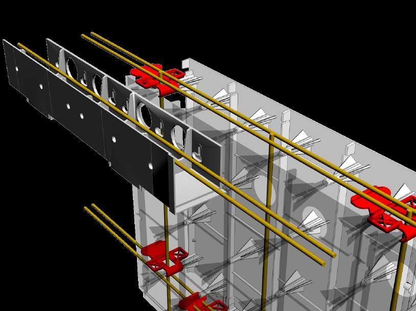 Two lengths of Rebar are then attached to the vertical bars, and one through the middle of the block