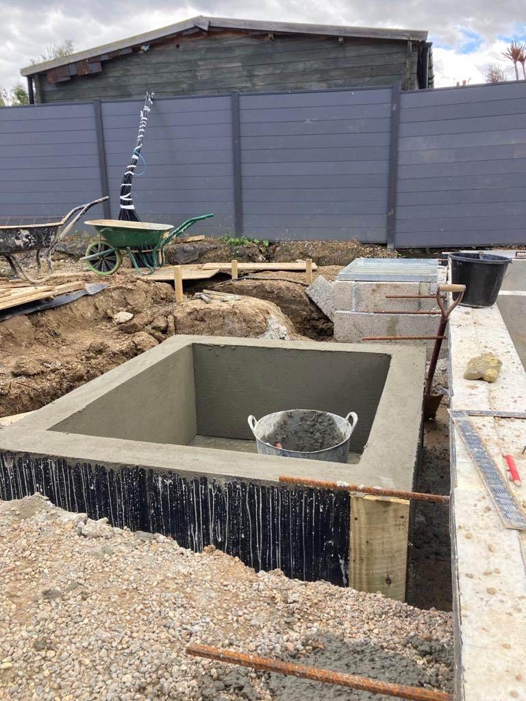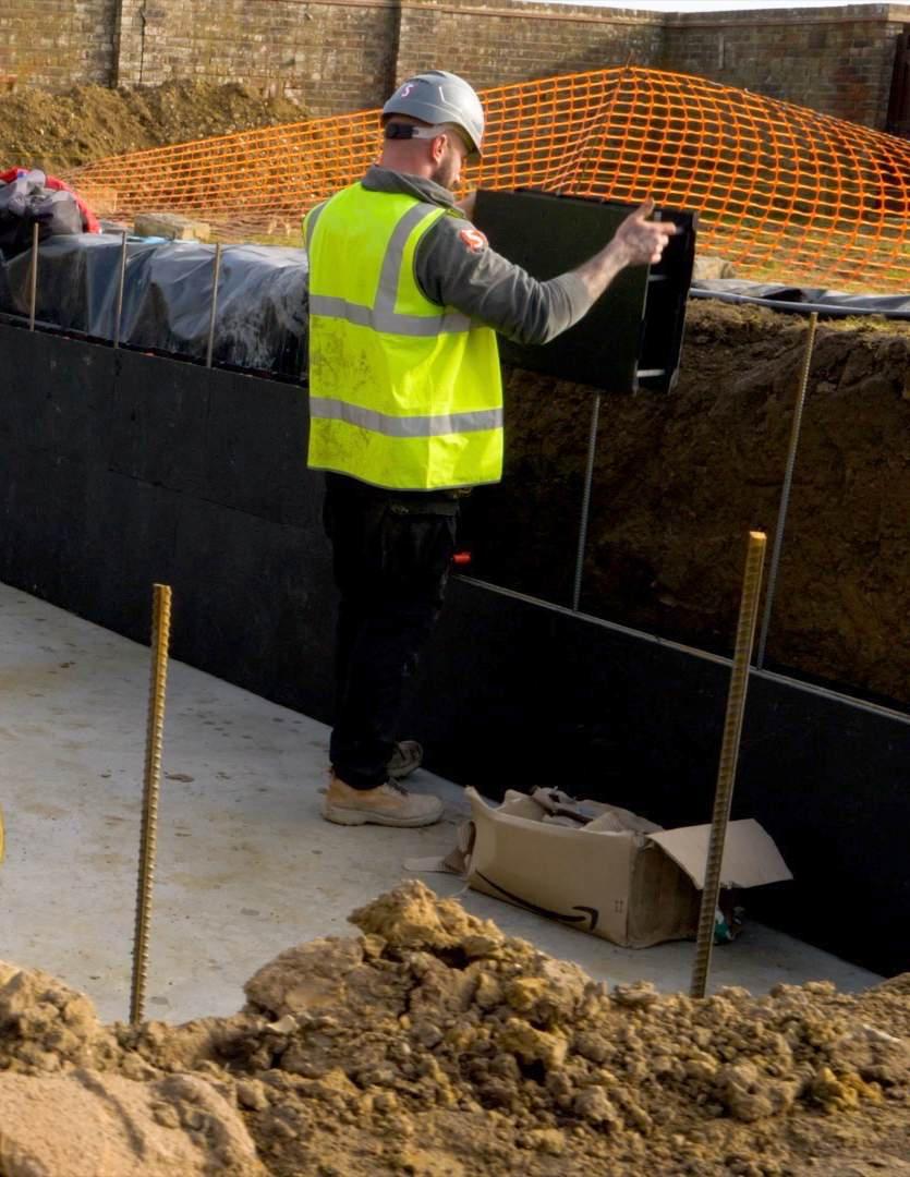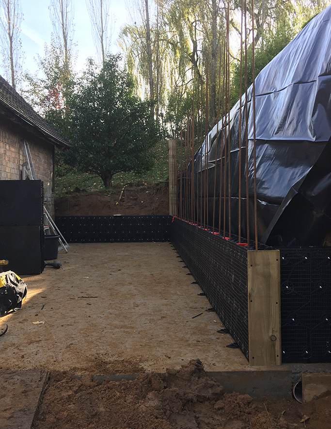 Cut and position any weep holes or other fixtures and fittings. Best to do it now so you’re not trying to cut through your new reinforced concrete wall. Much easier.