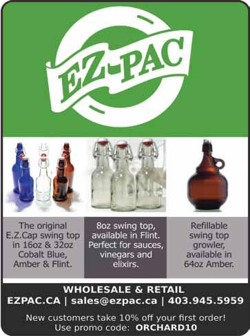 work to see if he can coordinate with another farm. “If I have a call for six bins in Oliver for instance, I will try and connect with another grower in the area and see if we can make up the 10-bin minimum for the trip.” And backyard growers won’t be left out. “We also offer a juicing service to home growers, through our community juicing events,” Karnail explains. “Someone who may only have one or two trees in their yard, but they want to put up some juice for their family. “We set up the juice factory here at the winery in West Kelowna and we also travel to other communities such as Salmon Arm, Armstrong and Abbotsford and hold day-long juicing events,” Karnail explains. With a minimum of 150 pounds of fruit, the backyard grower will go home with nine or ten, 5-liter bag-inthe-box containers of juice. If you are a small winery or cidery, the juice factory can adapt their line to produce unpasteurized juice, suitable for fermentation. If you want custom labels or a different size box, they can do that too.