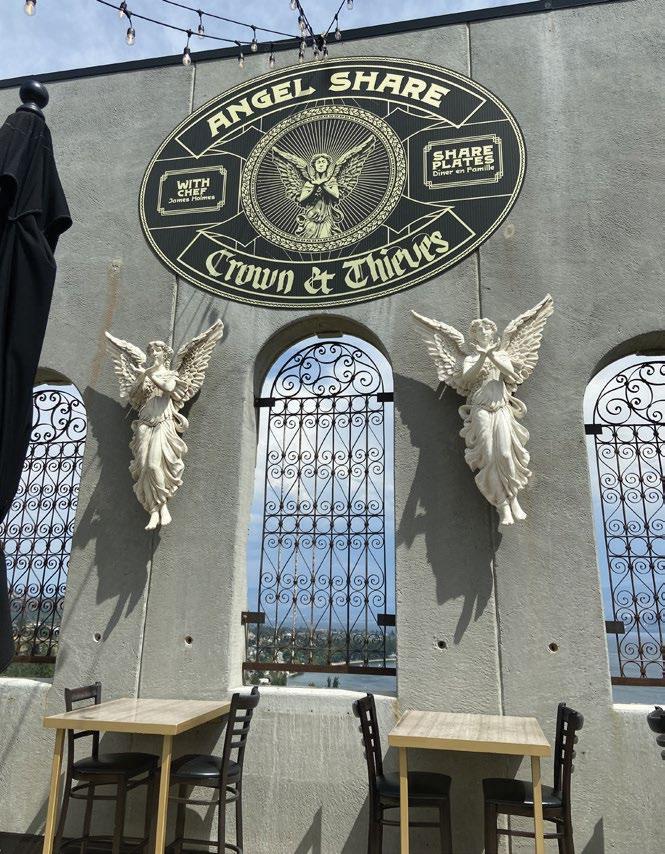 3887 Brown Road, West Kelowna Crown and Thieves isn’t just a winery; it’s like stepping into medieval-timesmeets-a-Harry-Potter-movie from the minute you arrive at the towering faux castle. Check out this ‘ruin on the hill’ that is home to a dark and sexy speakeasy downstairs, a scandalous Renaissance-style tasting room on the main floor with an ornate Italian-style terrace as well as a rooftop restaurant, Angel Share, with a great view, new chef and summer tasting menu.