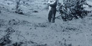 Grandfather Rexford Marshall next to newly planted orchard in the Carrs Landing area of Lake Country.