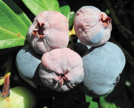 Removing and disposing of the mummies or burying them at least two inches deep with mulch reduces potential inoculum and helps fight mummy berry. Unfortunately, we often need to revert to fungicide applications to control this disease. Typically, fungicides belonging to FRAC code 3 are usually the most effective. There are several biologically based fungicides a grower might consider using near bloom to protect pollinators that have been effective in recent research trials.