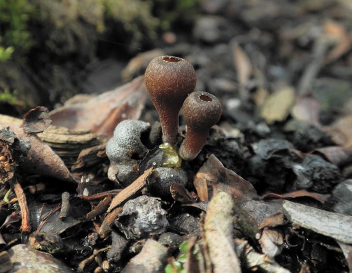 Mummy berry gets its name from the infected fruit which mummifies and falls off the bush every year. These mummies overwinter on the ground and serve as the source of primary inoculum for the following spring. In the spring, once the weather starts to warm up, the mummies form apothecia which are small cup-shaped mushroom-like bodies that are filled with ascospores. Ascospores are what cause the primary infections on young leaf tissue. Without the leaf tissue, infection cannot occur.