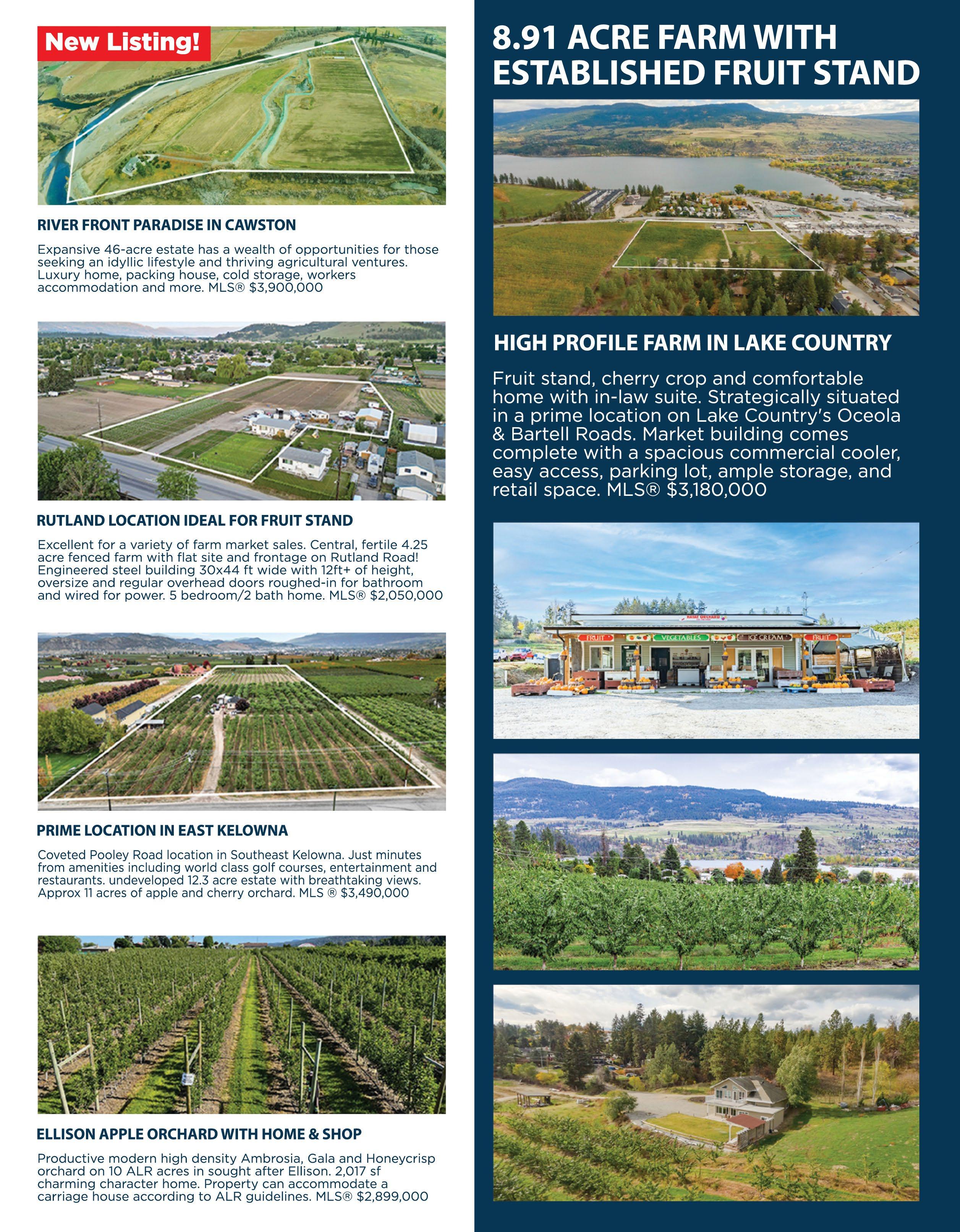 Scott is uniquely quali ed to e ectively assist with the purchase and sale of Horticultural, Farm, Acreage, Estate and Unique Properties throughout the Okanagan. To take advantage of ve generations of valued agricultural experience in the Okanagan, call Scott Marshall for your farm property needs!